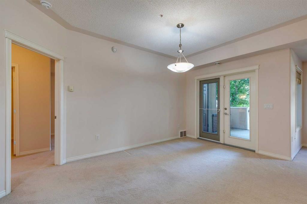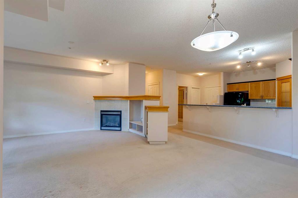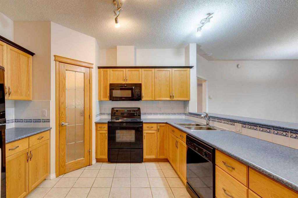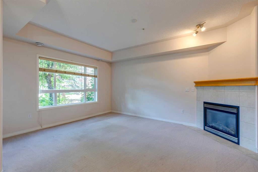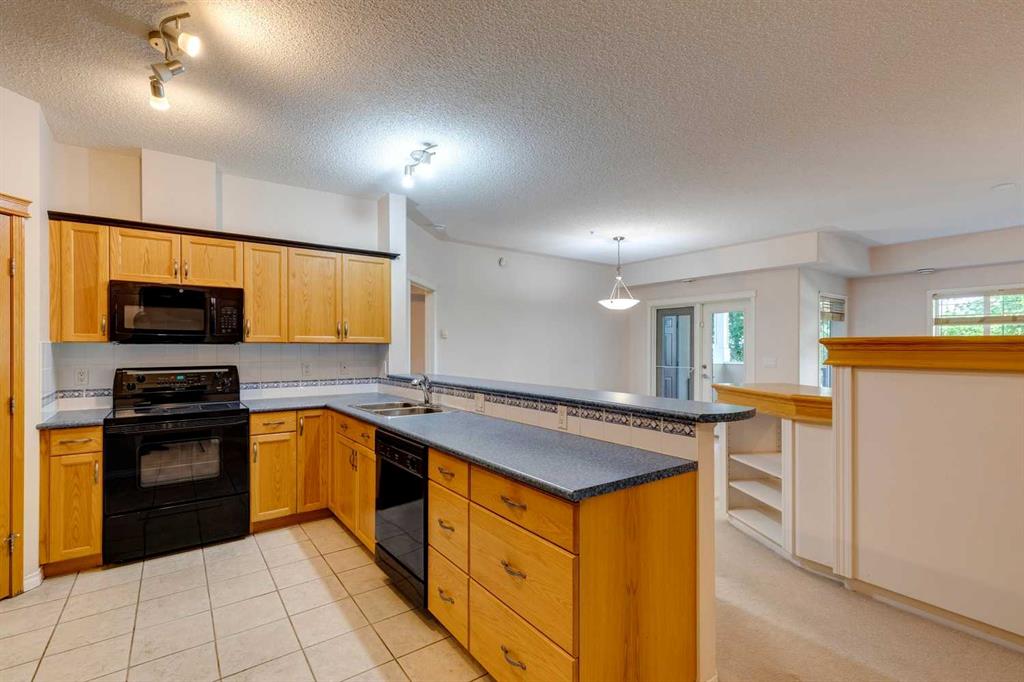 Discover your ideal living retreat amidst beautifully landscaped grounds at The Tudors. This meticulously maintained home offers a serene and relaxing atmosphere, tailored for those who cherish an easy-going lifestyle. Step into the kitchen featuring a breakfast bar, a large pantry, and tons of counter space—a delight for meal preparation and hosting gatherings. Adjacent, a versatile den awaits, perfect for remote work, studying, or creating your personal library. The dining area comfortably accommodates family gatherings, while the living room features a built-in shelving unit around the fireplace, ideal for displaying family photos and enjoying intimate evenings. Retreat to the primary bedroom, offering a spacious layout, a walk-in closet, and an ensuite with a dual vanity, a soothing tub, and a separate walk-in shower. A second bedroom provides further comfort for guests or family members. Relish the outdoors on the generously sized balcony, perfect for al fresco dining or unwinding amidst peaceful surroundings. Conveniently located on the first floor for effortless accessibility, particularly beneficial for older adults, this residence boasts two titled underground parking stalls. The well-managed and friendly community features a private gym, residents club with games area, and private function rooms. Additional amenities include a car wash, woodworking area, beautifully maintained landscaping, proximity to Westhills Shopping Centre and Aspen Landing, fabulous asphalt walking paths, parks, easy mountain access, and close proximity to public transit. Experience the pinnacle of adult living at The Tudors, where every detail is meticulously designed to offer comfort, convenience, and a profound sense of tranquility. Schedule your tour today and discover your new sanctuary.
