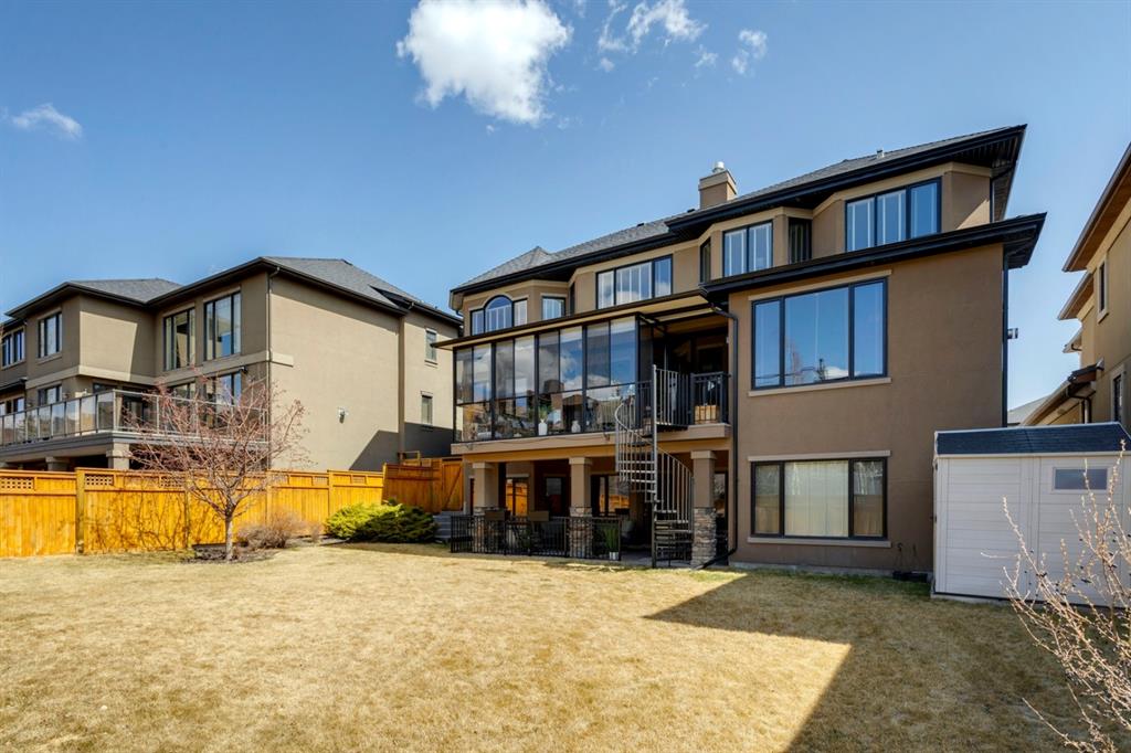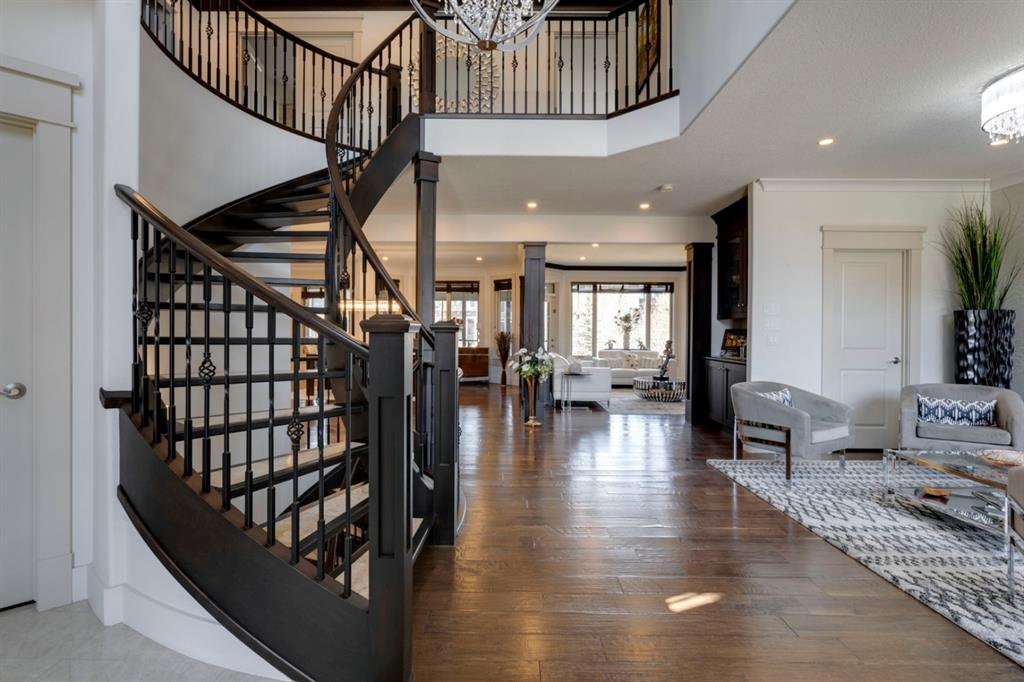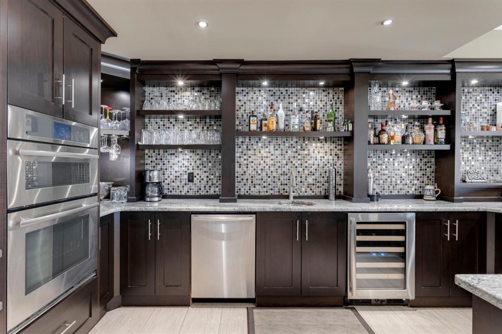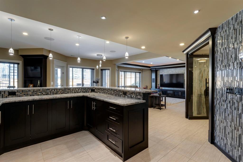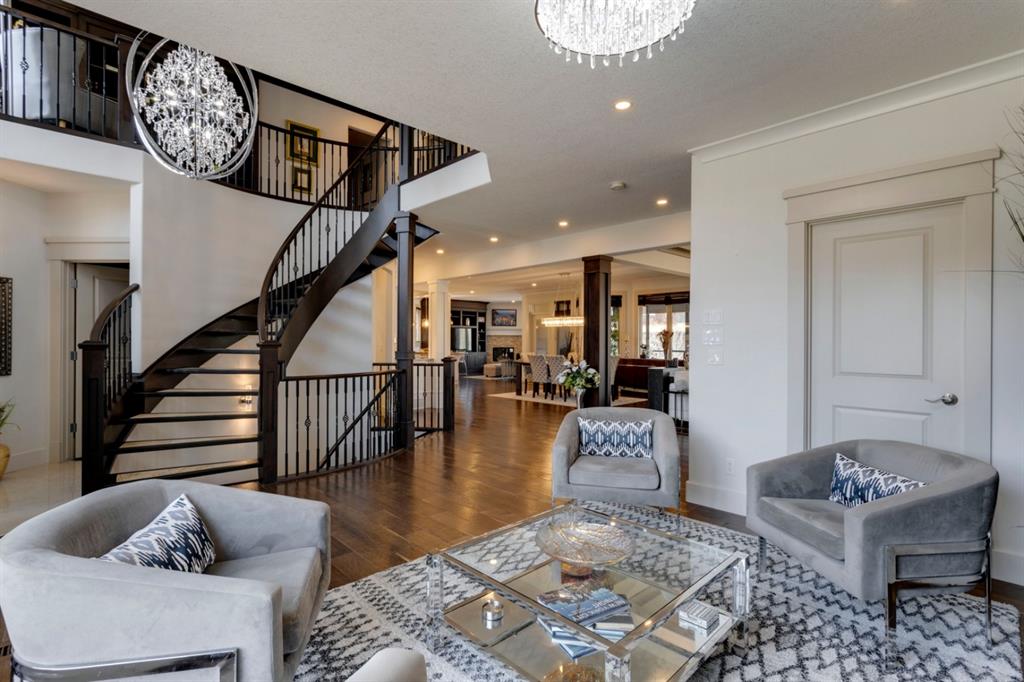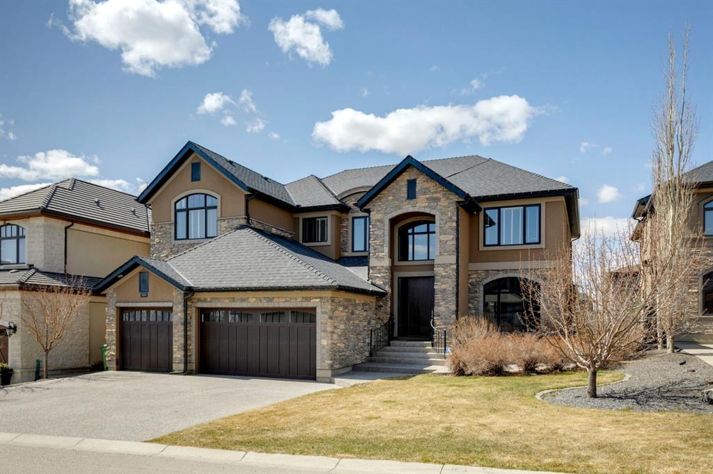 No need to start the car…the kids can walk to Rundle College, only one block away! Original one-owner home, custom built in the pinnacle of Aspen Woods, in prestigious Aspen Heights. Renovated in 2018 to unveil a modern, open concept main floor design that beckons you into over 6,000 square feet of meticulously finished living space. If you enjoy having a houseful of friends and family, this property is for you. Upon stepping inside, you are greeted by an elegant sitting/conversation room, which can easily be used as a formal dining room, depending on your needs. The living room features a fireplace and doors that open up to the West facing sunroom, extending outdoor living for 3 season enjoyment and offering views of the Rockies. The open concept eating area has a server’s bar, making entertaining a crowd easy. In the chef’s dream kitchen you’ll find granite counters, herringbone backsplash, and high end appliances including a 6-burner gas cooktop and double wall ovens. The convenient laundry/mudroom with walk in panty offers plenty of storage and easy access to the triple heated garage. A three story, spiralling staircase highlighted with inset limestone connects all three levels and meets up with a library on the second floor. French doors lead into the primary suite, which contains a double-sided fireplace, sitting area, walk-in closet and serene ensuite. Four additional bedrooms (one with its own ensuite) are generously sized for kids of all ages. A custom wine cellar with iron doors greets you as you enter the lower heated walk-out level. Work quietly from the home office which features multiple built-in desks and double-sided fireplace. The huge media room and games area provide tons of hang out space for everyone or to host Stanley cup parties. The wet bar is fully equipped with a full-sized Miele fridge, wall oven, microwave, dishwasher and a second wine fridge. Rest assured about any noise concerns – sound baffling has been installed in the ceiling to block the transmission of noise upstairs. Nestled down the hall are the fitness room, and a private 6th bedroom and bathroom clad in Italian marble for your visiting guests. Additional features include a brand new energy efficient hot water tank installed in 2024, hand scraped maple hardwood throughout, and a custom large front door with security locks. The yard has been professionally landscaped, is fully enclosed with fencing, faces west, and has an apple and pear tree. Only 12 minutes to downtown, and minutes to Hwy 1 and the mountains via the new Stoney trail corridor. Rundle College, Ernest Manning and the 69th Street LRT station are just steps away, with markets, shops, and restaurants all within walking distance. This home has it all, and is perfect for your large family gatherings. Oh, and did we mention: a Hallmark movie was filmed in this home (2022) and will be released in 2024.