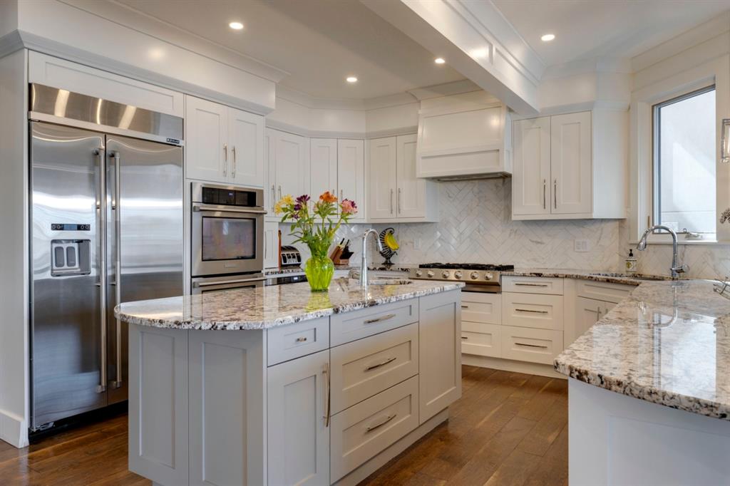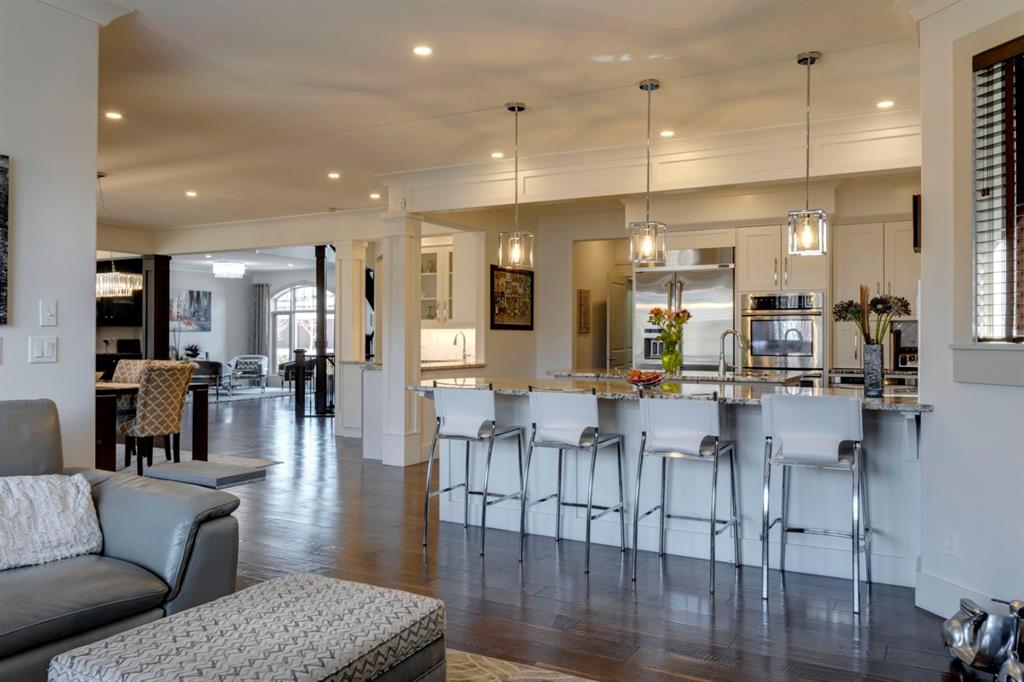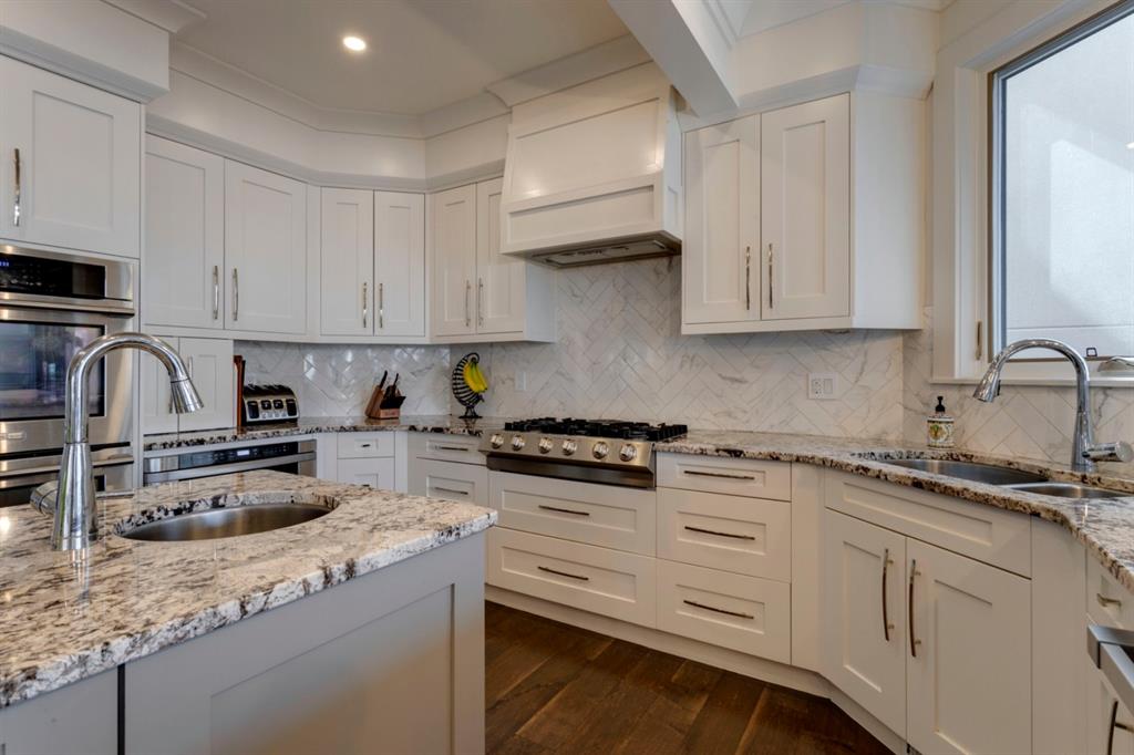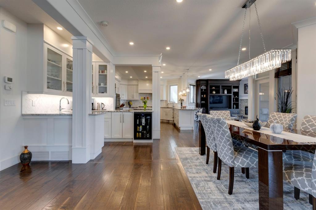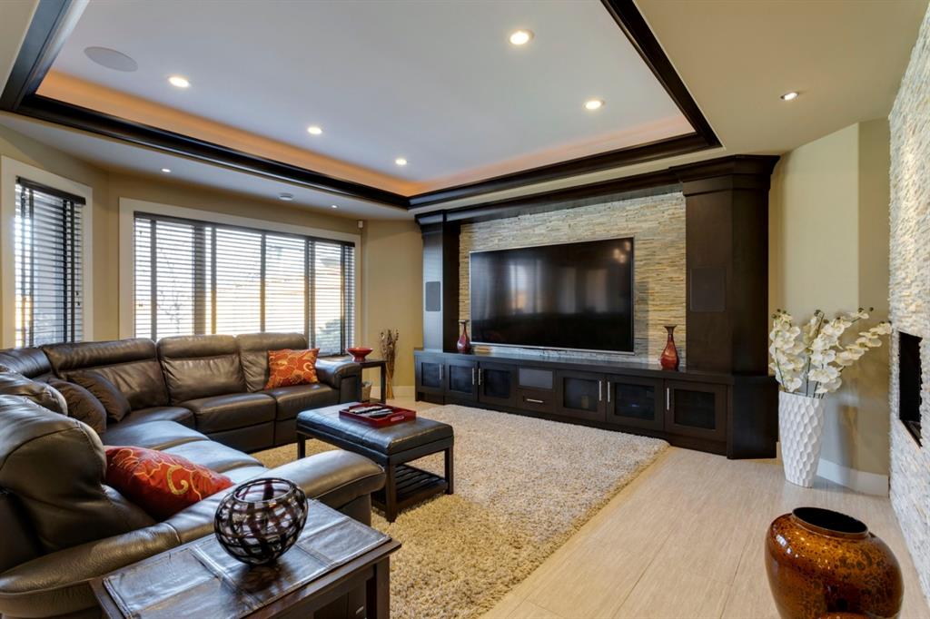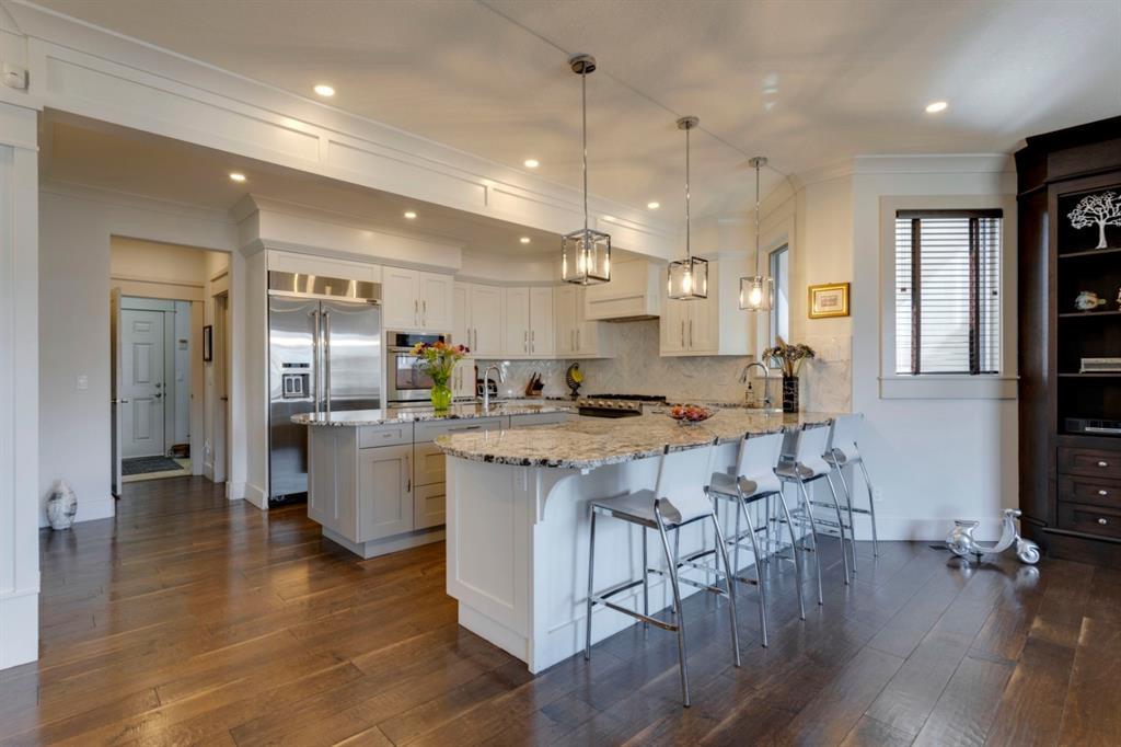 No need to start the car…the kids can walk to Rundle College, only one block away! Original one-owner home, custom built in the pinnacle of Aspen Woods, in prestigious Aspen Heights. Renovated in 2018 to unveil a modern, open concept main floor design that beckons you into over 6,000 square feet of meticulously finished living space. If you enjoy having a houseful of friends and family, this property is for you. Upon stepping inside, you are greeted by an elegant sitting/conversation room, which can easily be used as a formal dining room, depending on your needs. The living room features a fireplace and doors that open up to the West facing sunroom, extending outdoor living for 3 season enjoyment and offering views of the Rockies. The open concept eating area has a server’s bar, making entertaining a crowd easy. In the chef’s dream kitchen you’ll find granite counters, herringbone backsplash, and high end appliances including a 6-burner gas cooktop and double wall ovens. The convenient laundry/mudroom with walk in panty offers plenty of storage and easy access to the triple heated garage. A three story, spiralling staircase highlighted with inset limestone connects all three levels and meets up with a library on the second floor. French doors lead into the primary suite, which contains a double-sided fireplace, sitting area, walk-in closet and serene ensuite. Four additional bedrooms (one with its own ensuite) are generously sized for kids of all ages. A custom wine cellar with iron doors greets you as you enter the lower heated walk-out level. Work quietly from the home office which features multiple built-in desks and double-sided fireplace. The huge media room and games area provide tons of hang out space for everyone or to host Stanley cup parties. The wet bar is fully equipped with a full-sized Miele fridge, wall oven, microwave, dishwasher and a second wine fridge. Rest assured about any noise concerns – sound baffling has been installed in the ceiling to block the transmission of noise upstairs. Nestled down the hall are the fitness room, and a private 6th bedroom and bathroom clad in Italian marble for your visiting guests. Additional features include a brand new energy efficient hot water tank installed in 2024, hand scraped maple hardwood throughout, and a custom large front door with security locks. The yard has been professionally landscaped, is fully enclosed with fencing, faces west, and has an apple and pear tree. Only 12 minutes to downtown, and minutes to Hwy 1 and the mountains via the new Stoney trail corridor. Rundle College, Ernest Manning and the 69th Street LRT station are just steps away, with markets, shops, and restaurants all within walking distance. This home has it all, and is perfect for your large family gatherings. Oh, and did we mention: a Hallmark movie was filmed in this home (2022) and will be released in 2024.