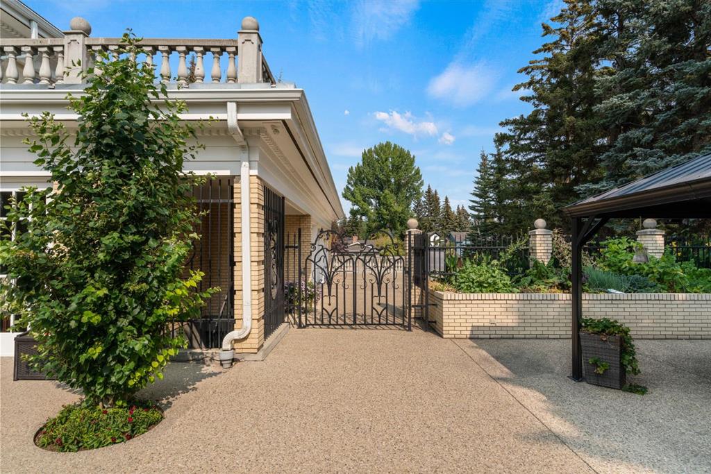 Timeless in design and uncompromising in craftsmanship, this bespoke neoclassical estate ranks among the city’s most distinguished residences. Nestled in a fully treed, meticulously landscaped setting ensuring complete privacy, it delivers an unforgettable first impression. The brick façade features columns, concrete balustrades, and wrought-iron gates to assert its stately presence. A gated, heated driveway leads to a triple garage and an exceptional underground parkade accommodating eight more vehicles, complete with car wash and workshop. Inside, a dramatic curved staircase anchors the grand foyer, introducing the artistry throughout. The main floor excels in entertaining, ideal for galas, business dinners, or family celebrations with generous gathering spaces, a cloak room, two elegant powder rooms, expansive corridors, and multiple French doors opening to terraces and gardens. A refined formal living room with limestone-trimmed fireplace, display cabinet and graceful chandelier has ample room for a grand piano. The spacious dining room with fireplace and butler’s pantry is ready for formal dining. An inviting library boasts wood bookcases and a lounge for quiet reflection. The family room provides multiple sitting areas, a wet bar, and access to the south-facing circular sunroom overlooking the private grounds. Adjacent is a classic kitchen with commercial-grade appliances including a six-burner cooktop, double wall ovens, and warming drawers. A casual dining area suits morning coffee or weeknight meals while the walk-in pantry contains an extra freezer and water dispenser. Upstairs, the primary suite is a private sanctuary with a serene sitting room and fireplace, plus doors out to the south-facing rooftop patio and multiple walk-in closets. A marble clad ensuite indulges with dual vanities, multi-head shower, and generous tub. The second and third bedrooms each have ensuites, while the third-floor guest suite/office features balcony views of the reservoir and mountains, plus a three-piece bath. Downstairs, the lower level focuses on leisure: a home theatre with tiered seating, a snack bar with candy display, a Tuscan-inspired wine cellar with barrel-vaulted ceiling and wrought-iron gates, gym/recreation room, and steam room. Private staff quarters include a secondary kitchen, fifth bedroom/hobby room, laundry with double washer/dryers, and separate entry. Located in a prestigious, tightly held enclave backing protected parkland, this property ensures privacy and security. Created for the connoisseur of living well, this home seamlessly blends spaces for health, leisure and passion. Every detail, from the classical proportions to the enduring materials reflects a home crafted for how discerning families truly live: entertaining beautifully, living comfortably, and enjoying privacy without compromise. A residence that embodies grace, strength and refined living, an iconic estate in every sense.