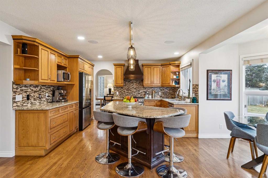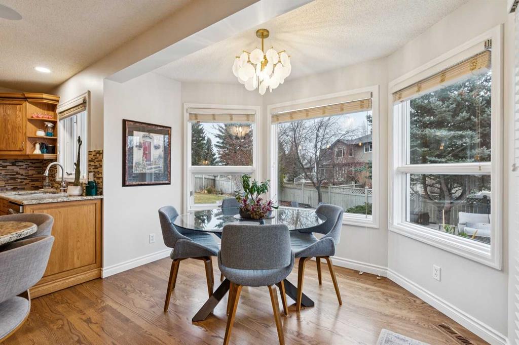 Perched high on Signal Hill, this gem of a home blends quiet cul-de-sac living with unbeatable convenience. A grand two-storey foyer sets the tone, featuring a sweeping curved staircase and a brass chandelier with a classic Ralph Lauren aesthetic. An arched entry leads to the effortlessly elegant living and dining rooms, where a vaulted ceiling and fireplace create an inviting, graceful space that you’ll love sharing with your friends. Generous in size, the dining room accommodates a large table and credenza with ease. The heart of the home is the kitchen, where two-toned cabinetry, granite counters and an island with seating flow into a casual dining nook and a welcoming family room anchored by a fireplace and book cases. A tucked-away office with wood wainscotting and a striking powder room with designer wallpaper add a touch of county-club sophistication. Upstairs, the standout is the exceptionally large primary retreat, complete with a cozy sitting area, fireplace, bay window, and views toward the reservoir. Wake up to sunrise vistas from this private corner, ideal for lingering over Sunday coffee. The ensuite offers a double vanity with makeup counter, soaker tub, water closet, and walk-in closet. Two additional bedrooms and a full bath complete this level.