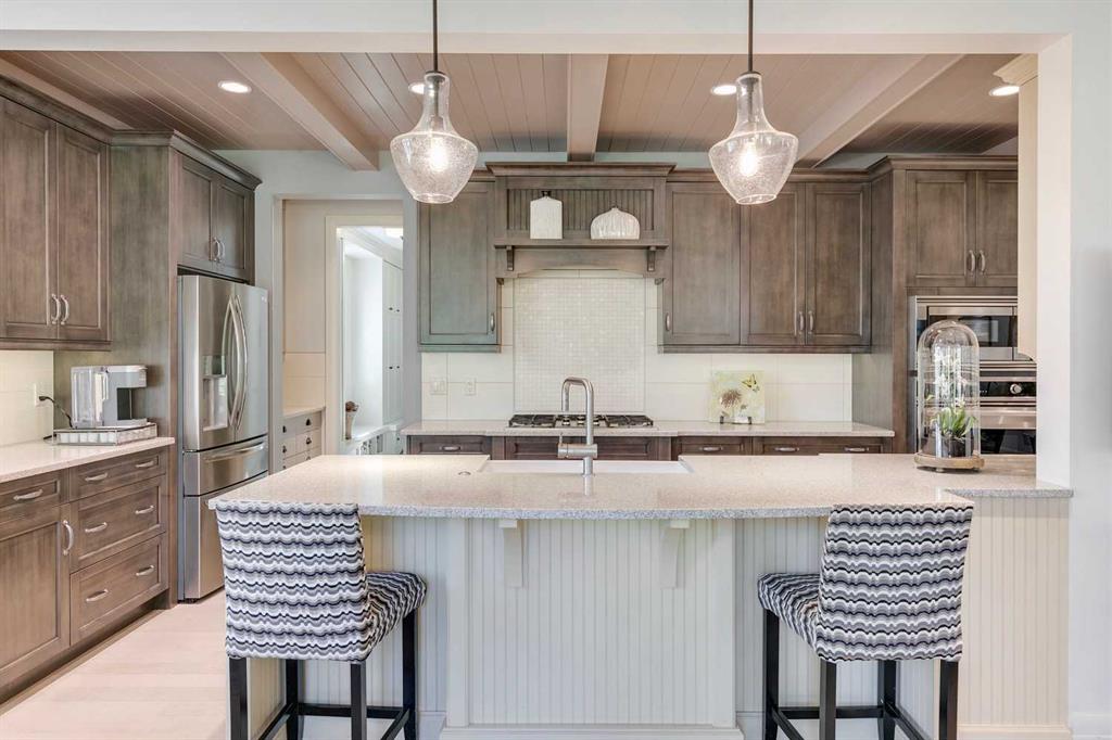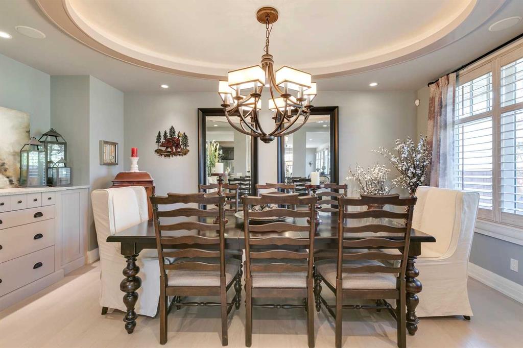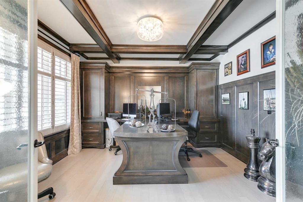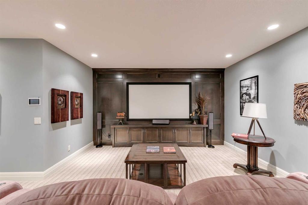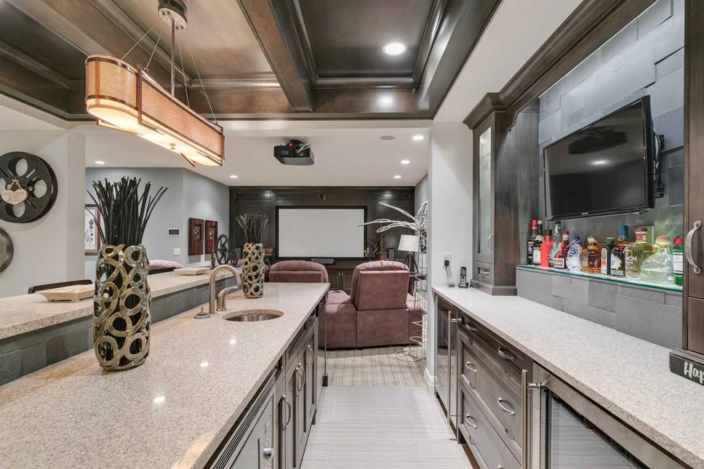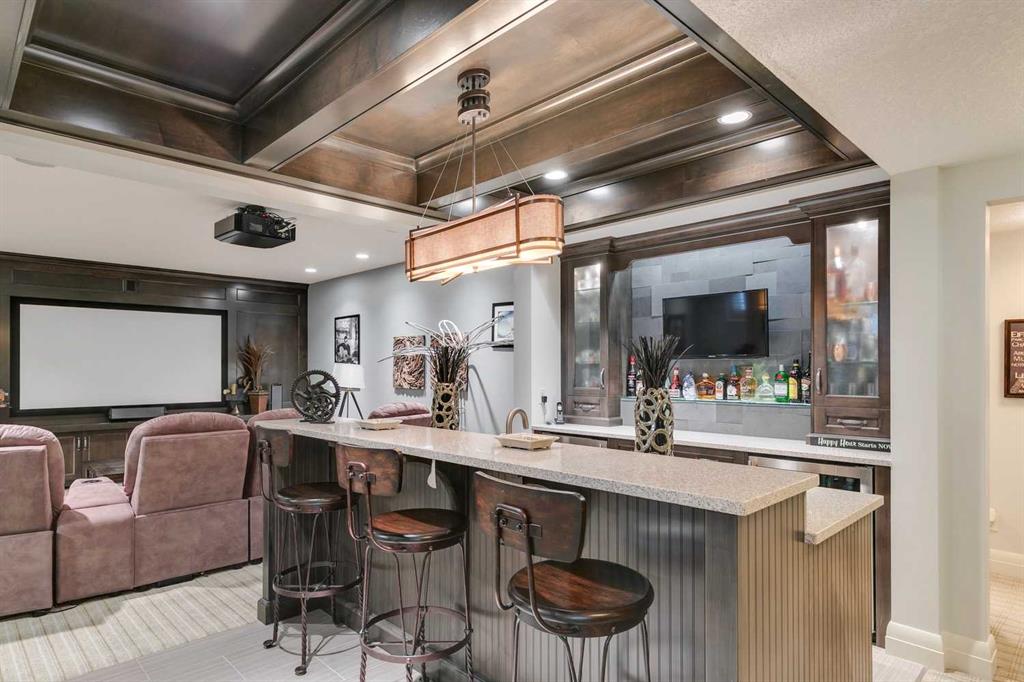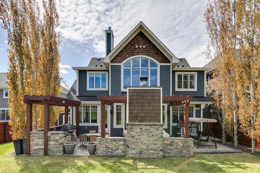 Welcome to this beautiful residence nestled in Springbank Hill that is perfectly tailored for a growing family. Beyond its stunning curb appeal this home boasts a wealth of amenities designed to enhance every aspect of modern family life. Immediately you’re greeted by the grandeur of the foyer, featuring double-height ceilings and gleaming hardwood oak floors. A spacious office provides a dedicated workspace for remote professionals or a perfect environment for children to focus on their studies. Meanwhile, at the heart of the home lies the kitchen, a haven tailored for culinary enthusiasts. Impeccably designed, it boasts a gas cooktop, covered range hood, granite countertops, and a spacious double sink, each element meticulously chosen to blend style with practicality. To elevate the experience further, a bar area, complete with a wine fridge, adds a touch of sophistication and convenience. Formal dining is elevated in the large dining room, where elegant coffered ceilings create an atmosphere of refinement. For more relaxed meals, a dining nook provides a charming setting for family gatherings. The inviting ambiance of the cozy living room provides an idyllic setting for unwinding at the end of the day. Convenience meets luxury in the well-appointed mudroom attached to the oversized garage, where floor-to-ceiling cabinetry offers ample storage for winter gear and outdoor essentials. Upstairs, the loft is a true standout, featuring architectural details such as a large arched window, vaulted ceiling, and a striking stone-faced wall with a fireplace and built-in TV cabinet. The primary bedroom suite is a tranquil retreat, boasting vaulted ceilings, a serene arched window, and a welcoming double-sided fireplace. The ensuite bathroom is equally impressive, with a double vanity, large tub, spacious walk-in steam shower, and built-in shelving. A stunning walk-in closet offers ample storage and easy access to the laundry room. Two additional bedrooms on this level each feature their own ensuites, providing privacy and comfort for all family members. Downstairs, the lower level offers even more space for entertainment. The family room doubles as a home theatre, complete with plush theatre-style seating for movie nights or watching sports. A spacious wet bar, gaming area, and wine room make hosting gatherings a breeze. Two additional bedrooms and a bathroom on this level provide flexibility for guests or older children seeking their own space. Outside, the covered outdoor living space is a true oasis, featuring a pergola, outdoor kitchen, and fireplace. Whether hosting summer barbecues or enjoying cozy evenings by the fire, this space offers the perfect backdrop for making memories with family and friends. With ample yard space for children to play and explore, this home truly offers the best of both indoor and outdoor living.