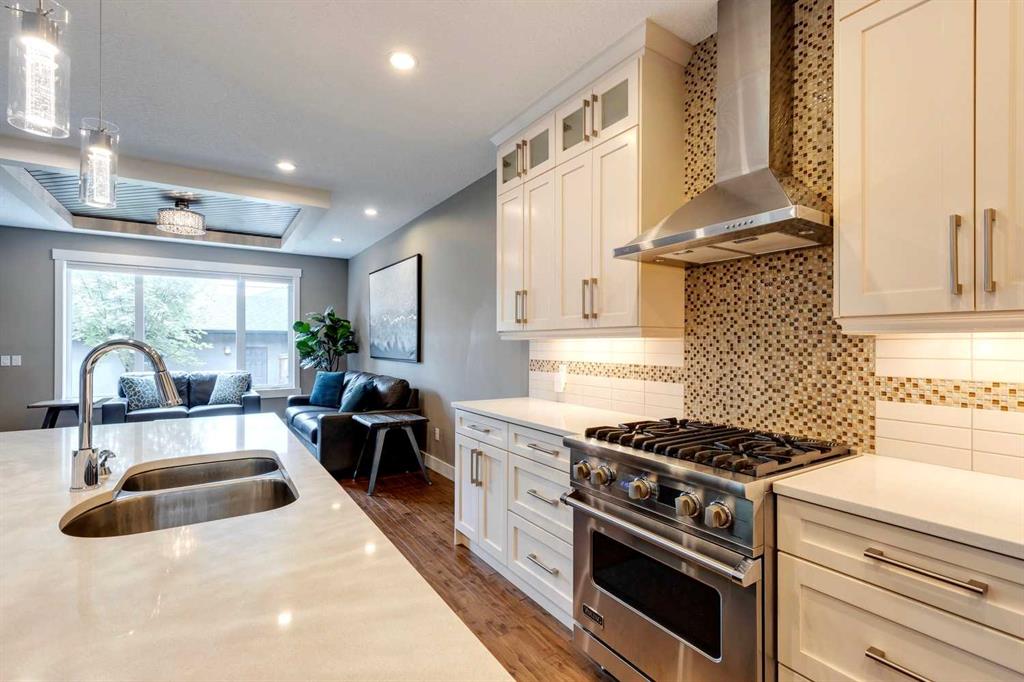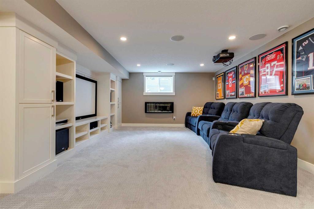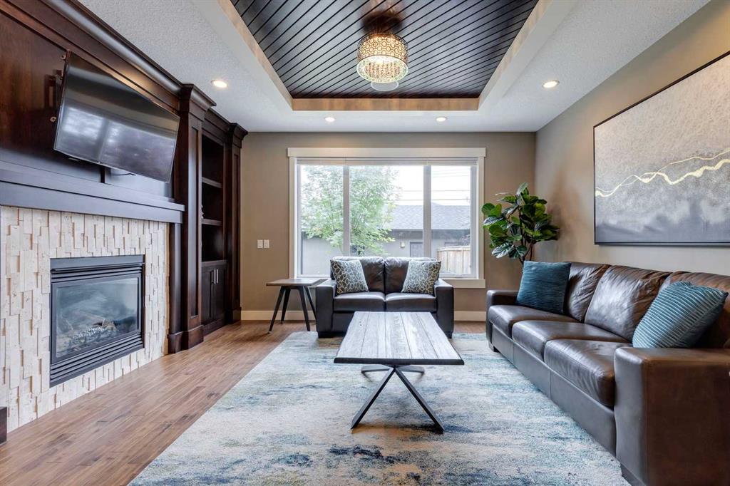 Nestled on a picturesque, tree-lined street with no thru-traffic, this property offers the ideal blend of tranquility and convenience. Situated just steps away from the newly developed Balmoral Circus Park, complete with a charming promenade and multi-purpose green space, this home boasts a prime location. As you step inside, you’ll be greeted by a well-designed floor plan, perfect for modern living. The foyer introduces a versatile flex space that can be adapted to suit your needs, whether it be a home office, music room or a cozy sitting area. Enhanced by a large window and accent wall paneling, this space is both functional and stylish. The heart of the home is the open concept kitchen, living room and dining area. Pristine white cabinets, a contrasting wood island, quartz counters, a backsplash accented by mosaic tiles, glass display cabinets that stretch to the ceiling adorn the kitchen. The adjacent dining area offers a seamless flow, ensuring effortless entertaining and everyday dining experiences. There is a welcoming living room overlooking the backyard with a gas fireplace flanked by wood bookcases that provides a comfortable space to relax and unwind. The primary bedroom on the upper level features a vaulted ceiling, two walk-in closets, and a tastefully designed 5-piece ensuite. Two more well-appointed bedrooms, a bathroom, and a convenient laundry room complete the second floor. The basement of this home is an entertainment haven, boasting a spacious family room complete with a wet bar and fridge. Equipped with a home theatre system with a projector, it’s the perfect spot to watch the game or enjoy movie nights with friends. The basement also includes a fourth bedroom and an additional bathroom, providing ample space for guests or growing families. Throughout the home, a neutral colour palette creates a timeless aesthetic, and the property is meticulously maintained, making it move-in ready. Outside, a patio and flower bed invite you to enjoy the outdoors, while a detached double garage ensures convenience and storage space. Restaurants, the downtown core, SAIT, river pathways, and Confederation Park are nearby, further enhancing the appeal of this location. This exceptional semi-detached has impressive features, sits on a tranquil street, has proximity to parks and is in a very desirable neighbourhood.