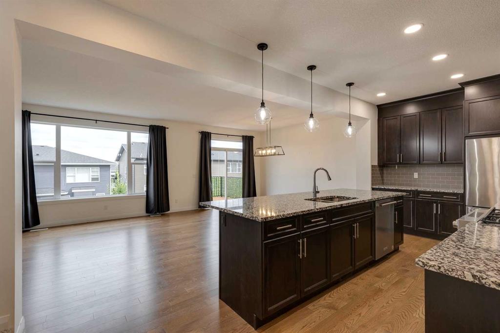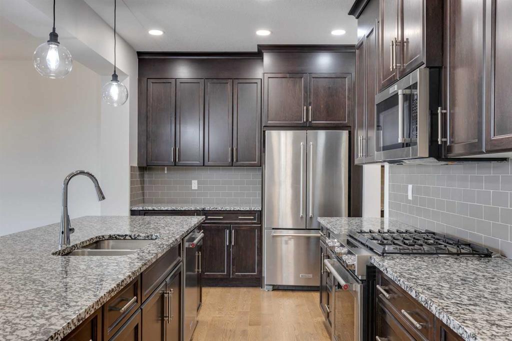 Welcome to this exquisite detached home, nestled in the picturesque Crestmont community. Ideal for family life, this residence offers a perfect blend of comfort, style, and functionality. Step inside to find stunning hardwood floors that flow seamlessly throughout the main level. The open-concept design ensures that young families can easily keep an eye on the kids, fostering both connection and convenience. The kitchen is a chef’s delight, featuring ample cabinetry, sleek stainless steel KitchenAid appliances, and a large island perfect for casual meals or supervising homework while preparing dinner. The adjacent dining area comfortably accommodates a large table, making it perfect for family gatherings. A beautiful fireplace anchors the living room, providing a cozy spot for holiday conversations and relaxation. Upstairs, the bonus room offers a welcoming retreat to unwind at the end of the day. The primary suite boasts a spacious window that floods the room with natural light, while the luxurious ensuite features dual vanities, a large soaking tub, a separate shower, and an expansive walk-in closet with built-in shelving. Two additional bedrooms, a shared bathroom, and a conveniently located laundry room complete this level. The newly finished basement provides ample space for recreation, whether you envision a movie room or a play area for the kids. It also includes a fourth bedroom and a dedicated bathroom, offering privacy for guests or older children. Outside, enjoy sunny meals on the deck just off the dining room or relax on the lower patio, all overlooking a generous landscaped backyard. Crestmont is a fantastic place to raise a family, with proximity to the mountains, WinSport, and a short drive to downtown. The community boasts walking paths, a water park, a playground, and various other amenities. Don’t miss this opportunity to create lasting memories in a beautiful home within a vibrant community.