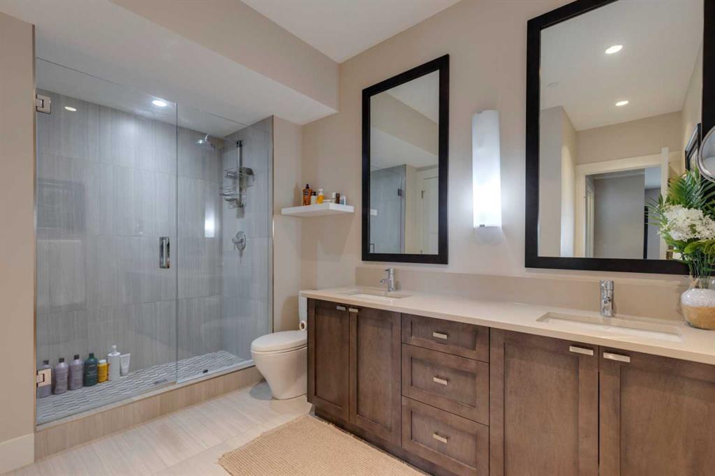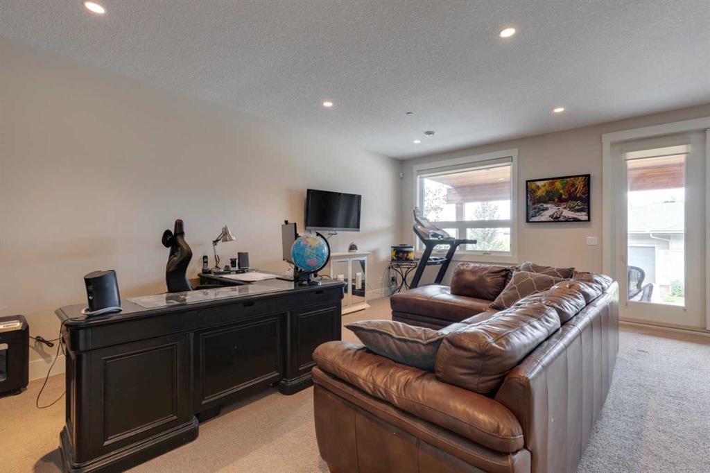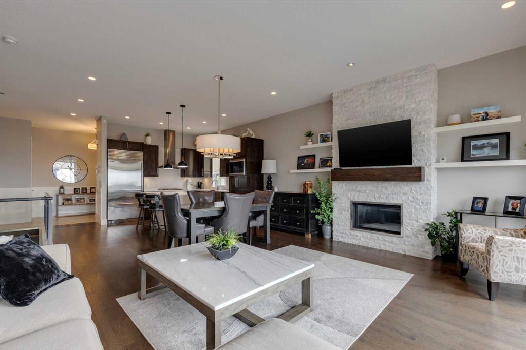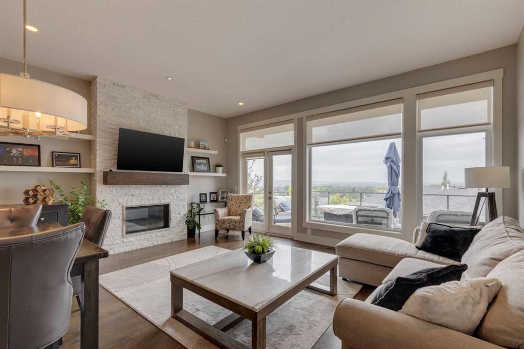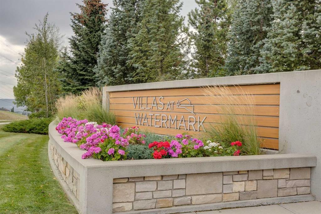 This elegant bungalow villa in Watermark is perfectly tailored for empty nesters or snowbirds seeking the ease of main floor living, the freedom of a lock and leave lifestyle, and the comfort of a timeless neutral palette. The open concept main floor is drenched in natural light and enhanced by soaring ten foot ceilings, hardwood floors, wainscoting, and expansive windows that frame mountain views. The contemporary wood kitchen is a chef’s dream with shaker style soft close cabinetry, quartz counters, a spacious island with seating, a gas cooktop, convection oven, and premium Wolf and Sub Zero appliances, while the adjacent dining area is perfect for both intimate dinners and sophisticated entertaining. The living room invites relaxation with its beautiful split stone fireplace and access to a large deck complete with BBQ gas line. The primary suite is an owner’s retreat featuring a panelled feature wall, a walk in closet with built-ins, and a luxurious five piece ensuite with dual vanities and a wide soaking tub. A mud and laundry room with garage entry adds everyday convenience, and the double attached heated garage with epoxy flooring ensures a polished finish. The lower walk out level seamlessly extends the living space, offering a bright family room, in floor heating, two additional bedrooms that provide privacy and comfort, and a four piece bath with dual vanity, along with direct access to a covered patio with a hot tub connection. Neutral contemporary finishes throughout give the home a sophisticated yet welcoming feel, while the thoughtful layout allows for downsizing without compromise. Outdoors, shared green space, manicured landscaping, natural stone and timber accents, and the benefit of yard and flowerbed maintenance create effortless curb appeal. Residents enjoy the lifestyle Watermark is known for, including a clubhouse, fitness centre, and pathways to explore. Additional features include central air conditioning, central vac, a water softener, and a security system with camera rough-in. Designed for connection and comfort, this villa is a place where unforgettable moments are created and every day feels extraordinary. Bungalow villas are rare, so seize the opportunity to embrace a luxurious low maintenance lifestyle and begin your Watermark story today!