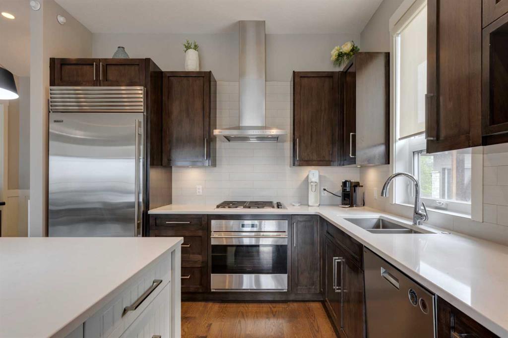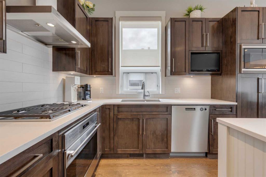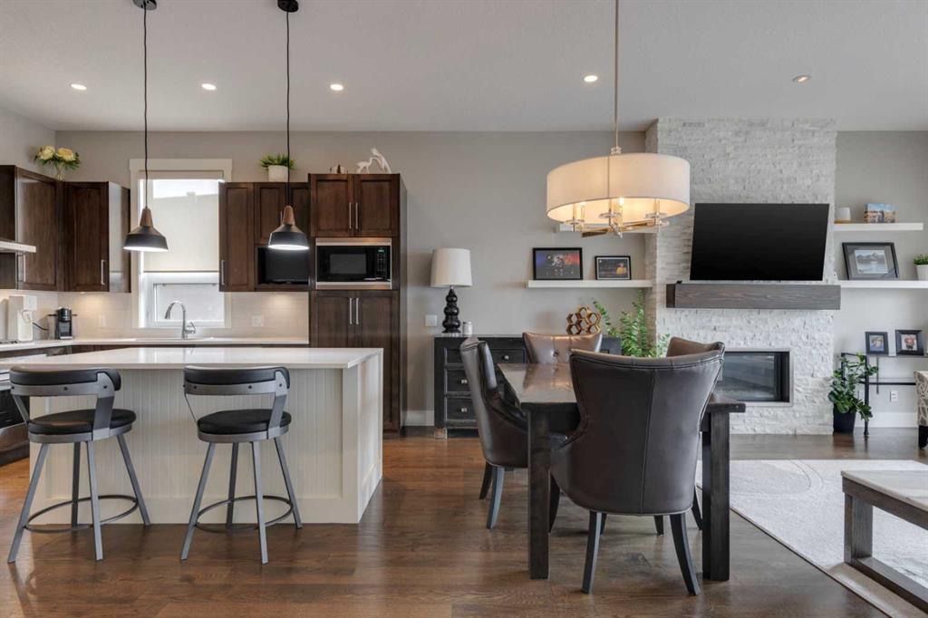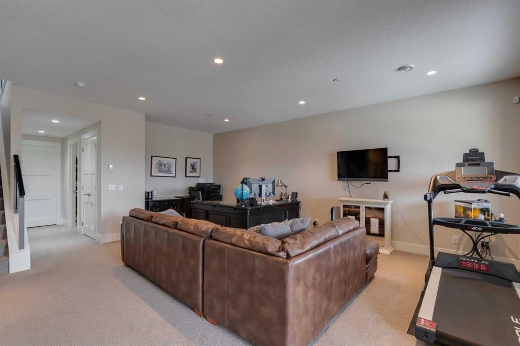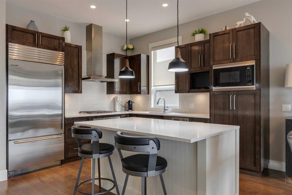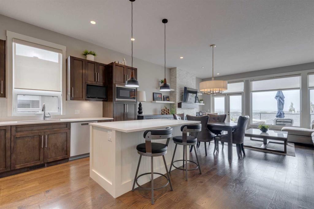 This elegant bungalow villa in Watermark is perfectly tailored for empty nesters or snowbirds seeking the ease of main floor living, the freedom of a lock and leave lifestyle, and the comfort of a timeless neutral palette. The open concept main floor is drenched in natural light and enhanced by soaring ten foot ceilings, hardwood floors, wainscoting, and expansive windows that frame mountain views. The contemporary wood kitchen is a chef’s dream with shaker style soft close cabinetry, quartz counters, a spacious island with seating, a gas cooktop, convection oven, and premium Wolf and Sub Zero appliances, while the adjacent dining area is perfect for both intimate dinners and sophisticated entertaining. The living room invites relaxation with its beautiful split stone fireplace and access to a large deck complete with BBQ gas line. The primary suite is an owner’s retreat featuring a panelled feature wall, a walk in closet with built-ins, and a luxurious five piece ensuite with dual vanities and a wide soaking tub. A mud and laundry room with garage entry adds everyday convenience, and the double attached heated garage with epoxy flooring ensures a polished finish. The lower walk out level seamlessly extends the living space, offering a bright family room, in floor heating, two additional bedrooms that provide privacy and comfort, and a four piece bath with dual vanity, along with direct access to a covered patio with a hot tub connection. Neutral contemporary finishes throughout give the home a sophisticated yet welcoming feel, while the thoughtful layout allows for downsizing without compromise. Outdoors, shared green space, manicured landscaping, natural stone and timber accents, and the benefit of yard and flowerbed maintenance create effortless curb appeal. Residents enjoy the lifestyle Watermark is known for, including a clubhouse, fitness centre, and pathways to explore. Additional features include central air conditioning, central vac, a water softener, and a security system with camera rough-in. Designed for connection and comfort, this villa is a place where unforgettable moments are created and every day feels extraordinary. Bungalow villas are rare, so seize the opportunity to embrace a luxurious low maintenance lifestyle and begin your Watermark story today!
