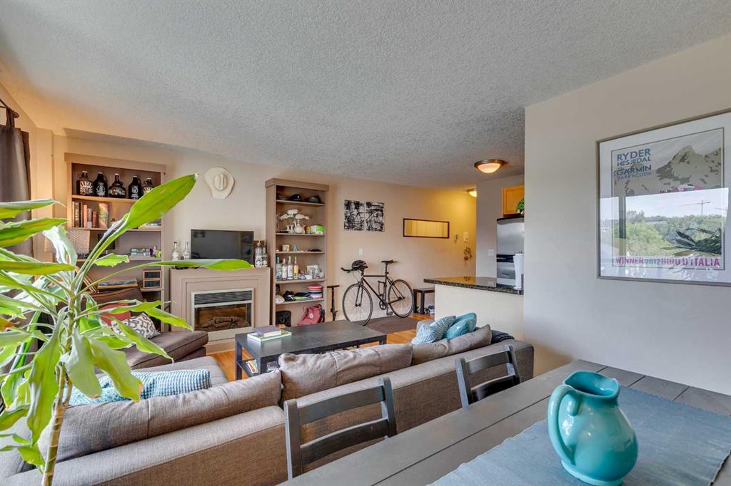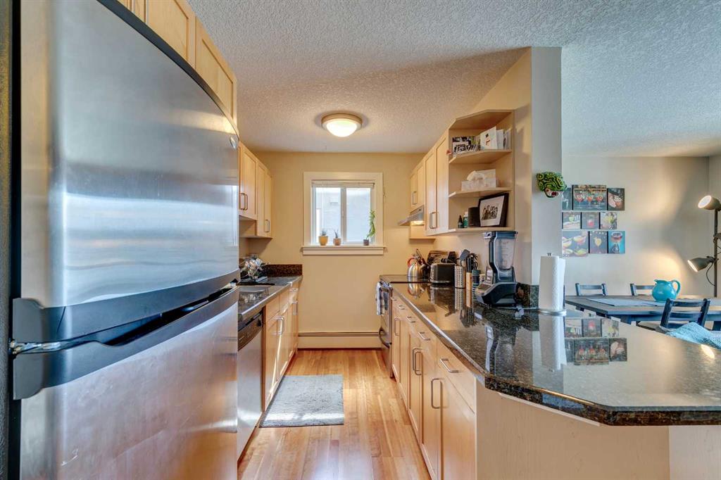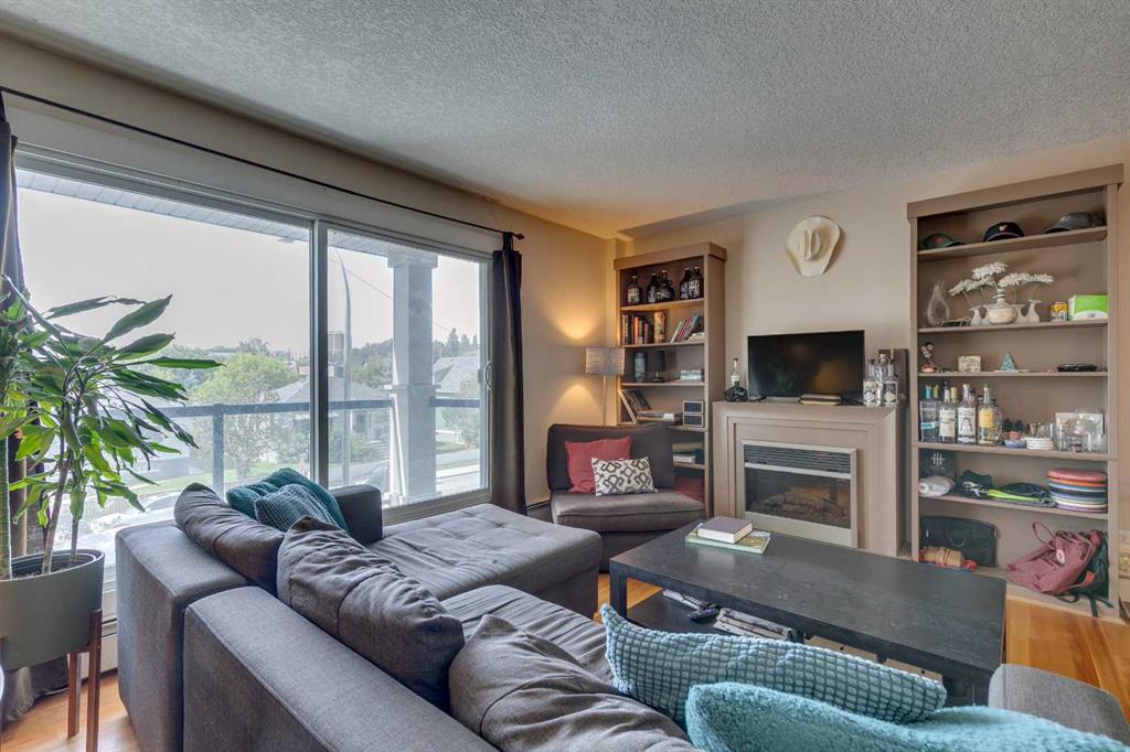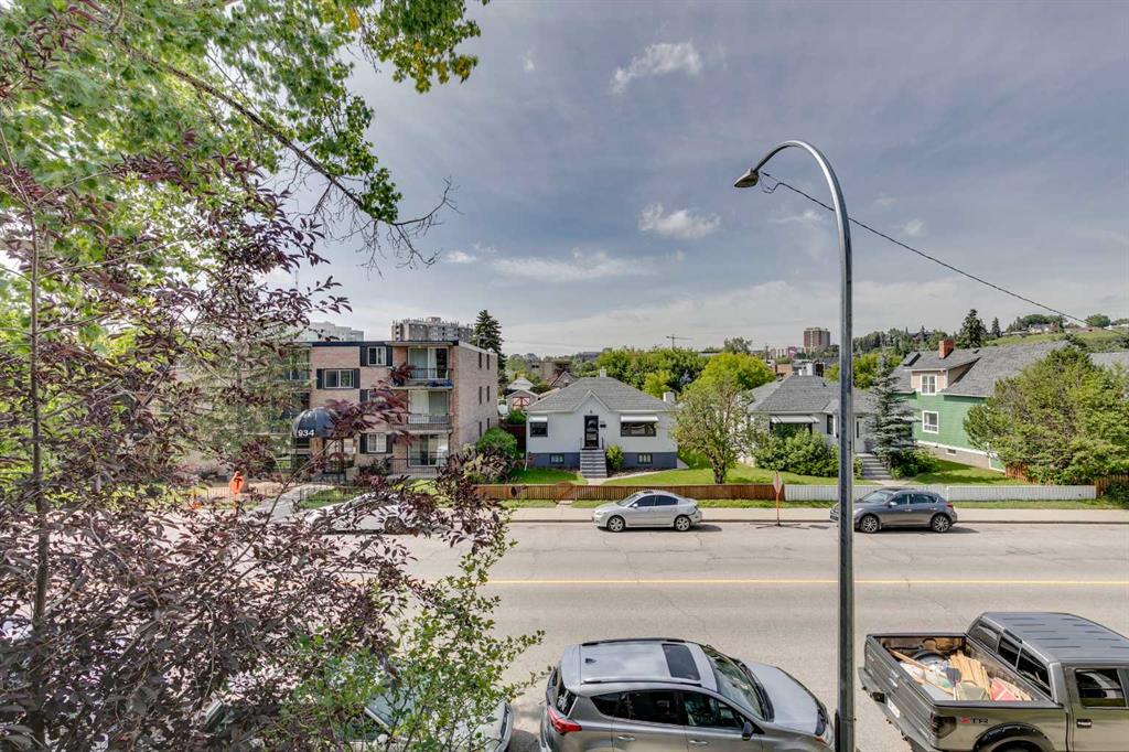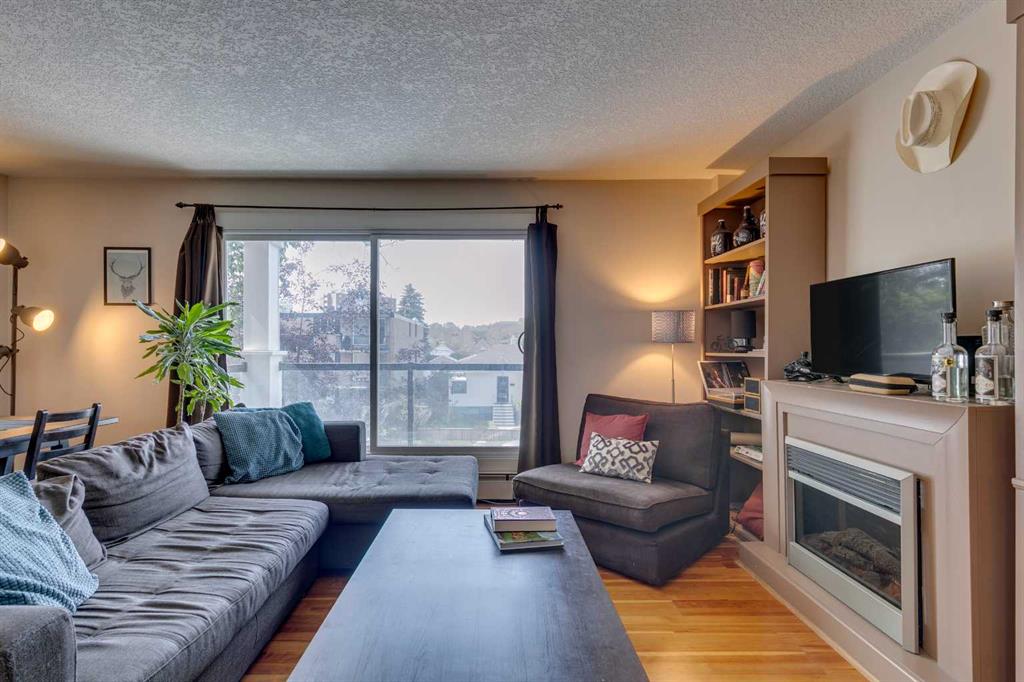 Here’s your rare chance to own a bright and stylish corner unit in the heart of Sunnyside, one of Calgary’s most iconic inner-city neighborhoods. Designed for those who crave connection, convenience, and an active lifestyle, this 2-bedroom condo offers a smart open layout that’s equally appealing for first-time buyers, young professionals, or savvy investors seeking rental income. Sunlight pours into this end unit through oversized sliding doors, leading to a private 11′ balcony perfect for morning coffee, evening BBQs, or simply enjoying the fresh air. Inside, the kitchen offers granite counters, ample workspace, and generous cabinetry for all your culinary needs. The dining area flows easily into a spacious living room, where a cozy electric fireplace creates the perfect ambiance for relaxing or entertaining. Both bedrooms feature large windows that invite in natural light, and the primary bedroom provides plenty of space to unwind. In-suite laundry and additional storage space complete the floor plan, adding everyday convenience and functionality. An assigned parking stall is just steps from your back entry with back lane access. This quiet building is professionally managed and is home to respectful neighbors, offering a sense of community and peace of mind. Beyond your doorstep, everything you need is just moments away: you’re three blocks from the river and mere steps from Prince’s Island Park, giving you instant access to the city’s best pathways for biking, jogging, or scenic strolls. Enjoy Sunnyside’s eclectic mix of trendy cafés, local boutiques, and charming eateries, with Safeway and the C-Train station only one block away. Whether you’re commuting to downtown, SAIT, U of C, or Foothills Hospital, you’ll get there in under 10 minutes. With a prime location, smart layout, and vibrant community all at your fingertips, this is a unique opportunity to secure your place in one of Calgary’s most desirable neighbourhoods. Don’t miss out on owning this inner-city home in the vibrant Sunnyside community, where your next chapter of memories, connection, and lifestyle begins!