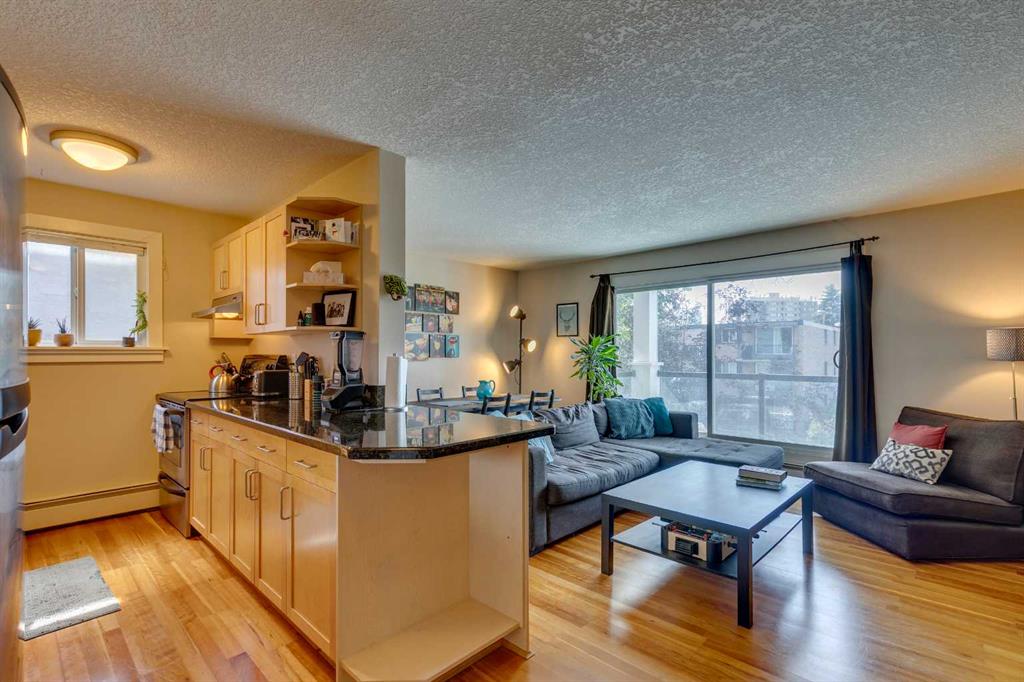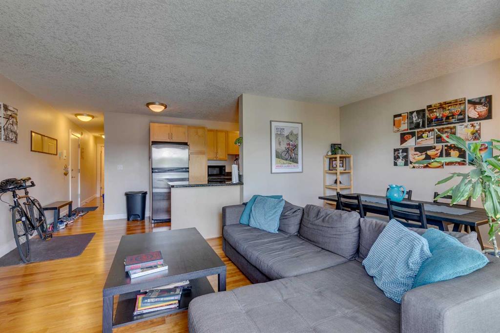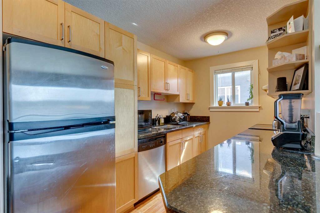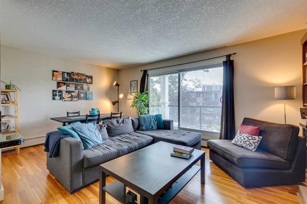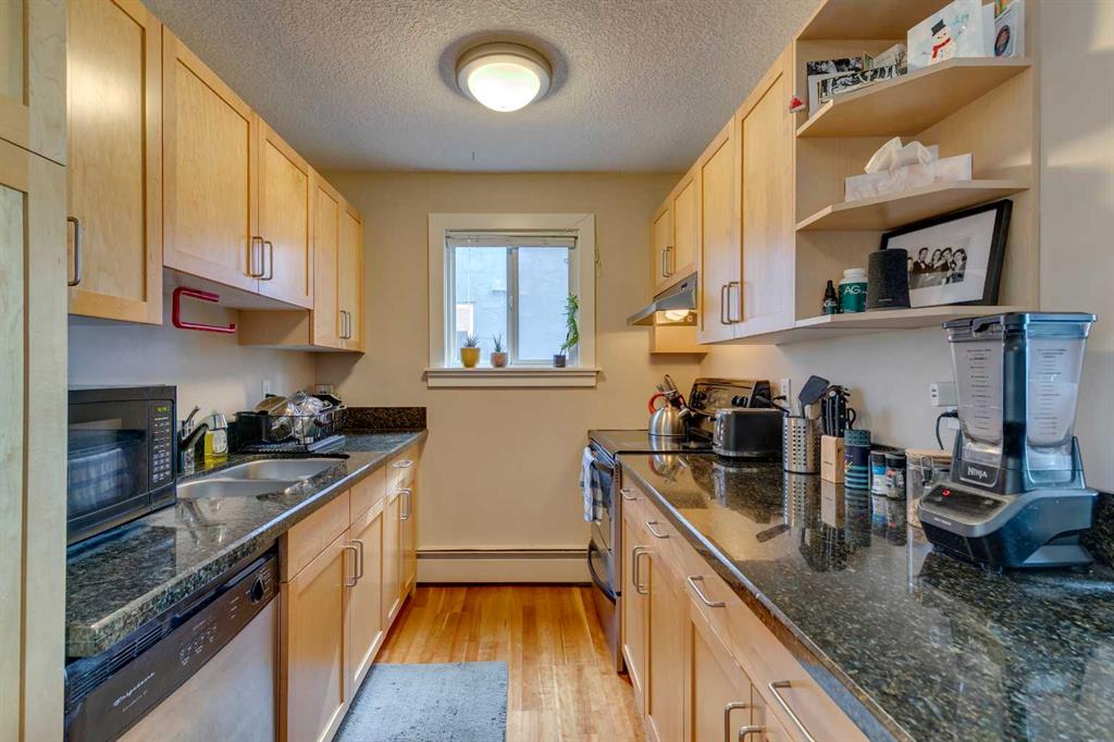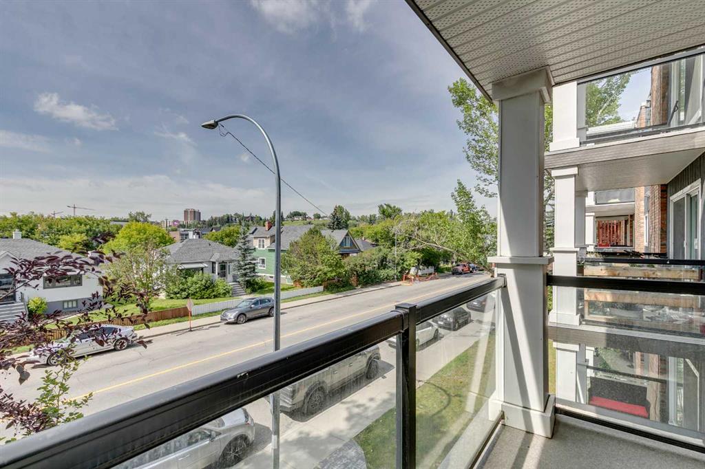Here’s your rare chance to own a bright and stylish corner unit in the heart of Sunnyside, one of Calgary’s most iconic inner-city neighborhoods. Designed for those who crave connection, convenience, and an active lifestyle, this 2-bedroom condo offers a smart open layout that’s equally appealing for first-time buyers, young professionals, or savvy investors seeking rental income. Sunlight pours into this end unit through oversized sliding doors, leading to a private 11′ balcony perfect for morning coffee, evening BBQs, or simply enjoying the fresh air. Inside, the kitchen offers granite counters, ample workspace, and generous cabinetry for all your culinary needs. The dining area flows easily into a spacious living room, where a cozy electric fireplace creates the perfect ambiance for relaxing or entertaining. Both bedrooms feature large windows that invite in natural light, and the primary bedroom provides plenty of space to unwind. In-suite laundry and additional storage space complete the floor plan, adding everyday convenience and functionality. An assigned parking stall is just steps from your back entry with back lane access. This quiet building is professionally managed and is home to respectful neighbors, offering a sense of community and peace of mind. Beyond your doorstep, everything you need is just moments away: you’re three blocks from the river and mere steps from Prince’s Island Park, giving you instant access to the city’s best pathways for biking, jogging, or scenic strolls. Enjoy Sunnyside’s eclectic mix of trendy cafés, local boutiques, and charming eateries, with Safeway and the C-Train station only one block away. Whether you’re commuting to downtown, SAIT, U of C, or Foothills Hospital, you’ll get there in under 10 minutes. With a prime location, smart layout, and vibrant community all at your fingertips, this is a unique opportunity to secure your place in one of Calgary’s most desirable neighbourhoods. Don’t miss out on owning this inner-city home in the vibrant Sunnyside community, where your next chapter of memories, connection, and lifestyle begins!
