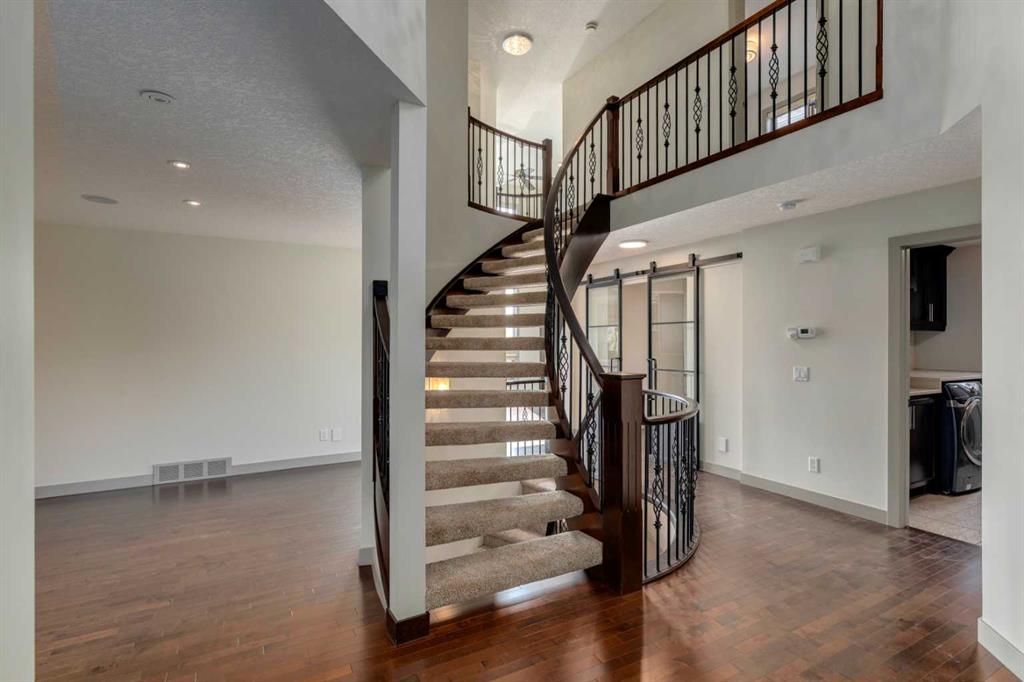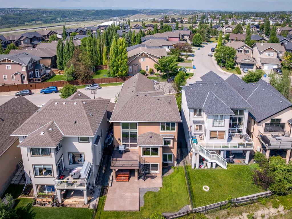 Positioned on a rare, ravine-backing walk-out lot on the ridge in one of Tuscany’s most desirable pockets, this exceptional estate home offers an elevated lifestyle for the active family. Priced to sell and showcasing over half a million dollars in custom upgrades, this fully finished five-bedroom residence delivers elegance and everyday function with direct access to the ravine pathway system. A charming front porch leads into the foyer with a show-stopping curved staircase and a formal dining room designed for memorable family celebrations. The main floor is flooded with natural light from an expansive wall of windows that frame peaceful ravine views and bring warmth into the open-concept living room and kitchen. A cozy gas fireplace adds ambiance, while the large gourmet kitchen is a true standout with granite counters, maple cabinetry, a generous island, built-in full fridge/freezer, and a walk-in pantry equipped for Costco-sized hauls. The adjacent breakfast nook offers spectacular panoramic views to be enjoyed while breaking bread with loved ones. Double barn doors reveal a thoughtfully designed office with built-in cabinetry, while a discreet 2-piece powder room and a custom mudroom/laundry area with cabinetry help keep family life beautifully organized. Hardwood and custom tile span the main floor under 9’ ceilings. Upstairs, the exquisite primary suite captures stunning ravine and city views, and features an indulgent, spa-worthy ensuite with heated floors, a soaker tub, an oversized shower with seating, a double vanity, and a dreamy walk-in closet. Three additional large bedrooms and a luxurious 4-piece bath round off this upper level. The fully developed walk-out level impresses with high-end finishes, a sleek fireplace and wet bar, a media centre, a games area, and direct access to the covered patio and hot tub. It is the perfect space for a family hang, and is an entertainer’s dream! A spacious fifth bedroom with walk-in closet, a luxe 4-piece bath with steam shower, and ample storage make this lower level as functional as it is beautiful. Outside, enjoy peaceful ravine and city views from the upper deck, complete with a spiral staircase leading down to the landscaped yard with fire pit area. The insulated and drywalled garage, large aggregate driveway, and charming front terrace add curb appeal and convenience. Enjoy the community’s sought-after amenities, including the Tuscany Resident’s Club with its water park, skating rink, and tennis courts. With easy access to the ring road, minutes to Winsport and Calaway Park, and surrounded by nature, trails and top-notch amenities, this is a rare opportunity to secure the ultimate family home in a family-focused community built for active living, connection, and lifelong memories. Claim your spot on the ridge where family life thrives and every day feels like a getaway!