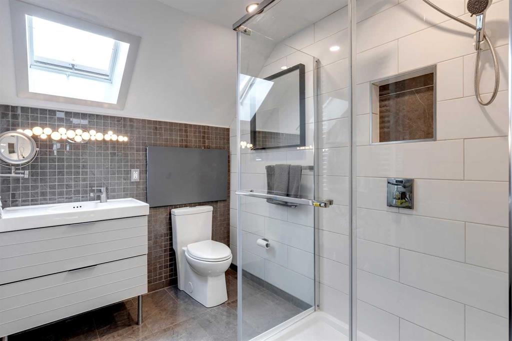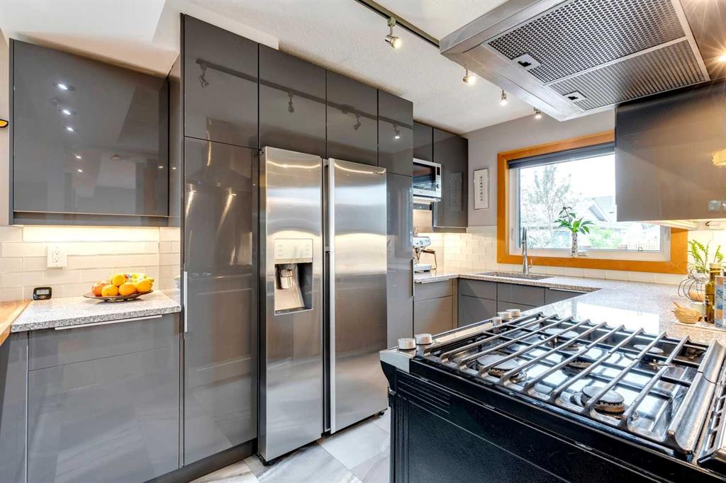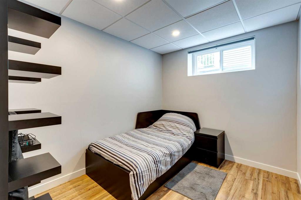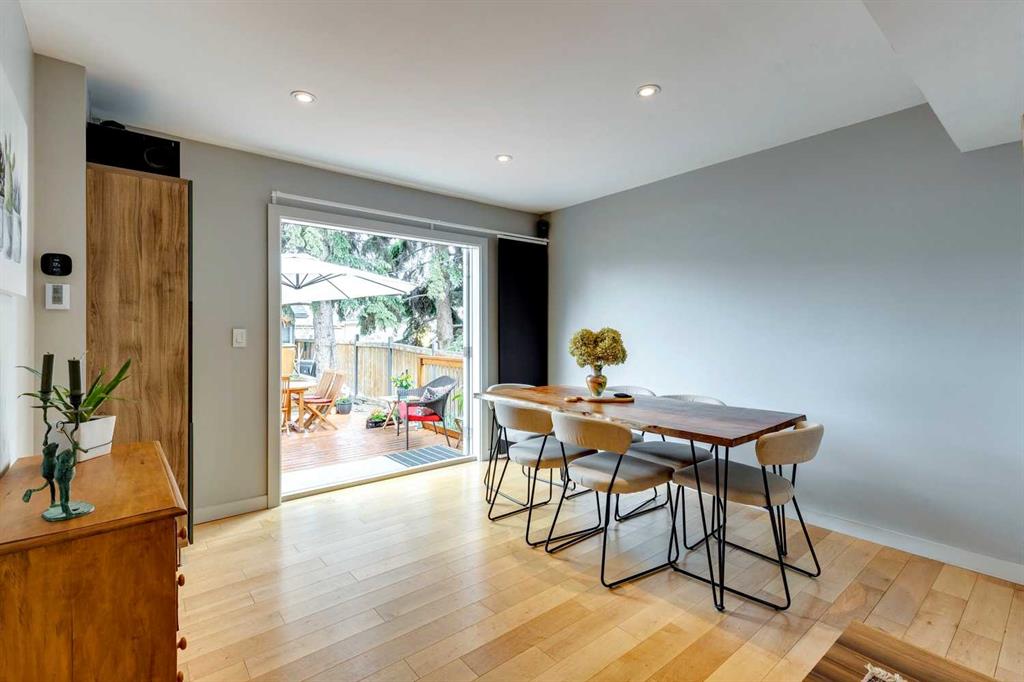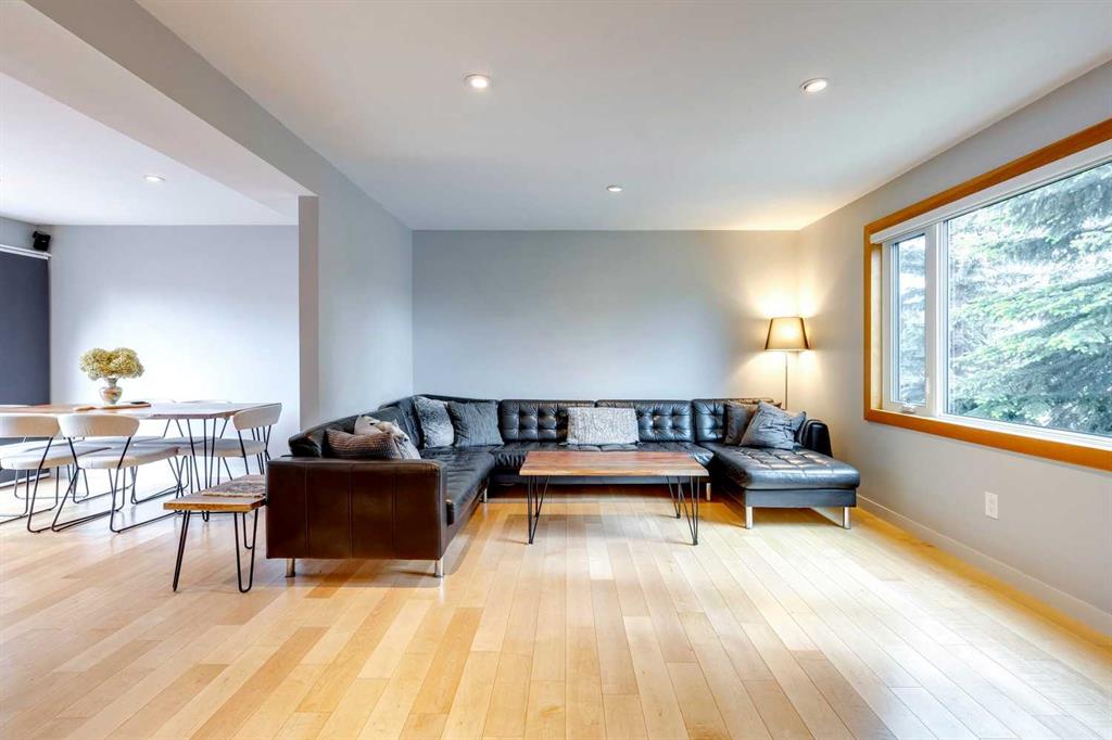 Welcome to this charming, cheerful house located in the popular neighbourhood of Garrison Woods. As you approach, the vibrant red front door immediately catches your eye, inviting you to explore the warmth and comfort within. Ideal for a couple or a small family, this home has a sun-filled, open-concept living room and dining room with doors out to the west-facing deck. The kitchen has been updated with a wood-topped breakfast bar, sleek cabinets, a five-burner stove, and a stainless steel fridge. Upstairs, the second floor has been expanded to include a spacious primary bedroom with dormer windows which flood the room with natural light, and a second bedroom with a large storage closet. In between is a renovated bathroom complete with modern finishes, a skylight, and heated towel rack. The fully developed basement is a versatile space with wood floors, offering a recreation room for entertainment and relaxation. Additionally, it houses two extra bedrooms and a laundry room, providing ample space for various needs. One of the standout features of this property is its expansive and sunny yard. Complete with a deck, lush lawn, raised garden beds, and mature trees, it offers a perfect outdoor oasis for relaxation, gardening, and play. Additional features include a double detached garage with a rough-in for a 220V outlet, a parking pad, a gas hookup for the BBQ, a VFR ventilation system in the roof and a hydraulic heating system. The neighbourhood of Garrison Woods is highly sought after for its abundance of parks, proximity to Marda Loop with its boutiques and eateries, excellent schools, and easy access to downtown and Mount Royal University. Flanders Park and playground are just a short stroll away, and you can enjoy a treat at the nearby ice cream shop or explore the scenic pathways of River Park on your bike. Don’t miss the opportunity to make this charming and cozy house your own and experience the vibrant lifestyle offered by Garrison Woods.