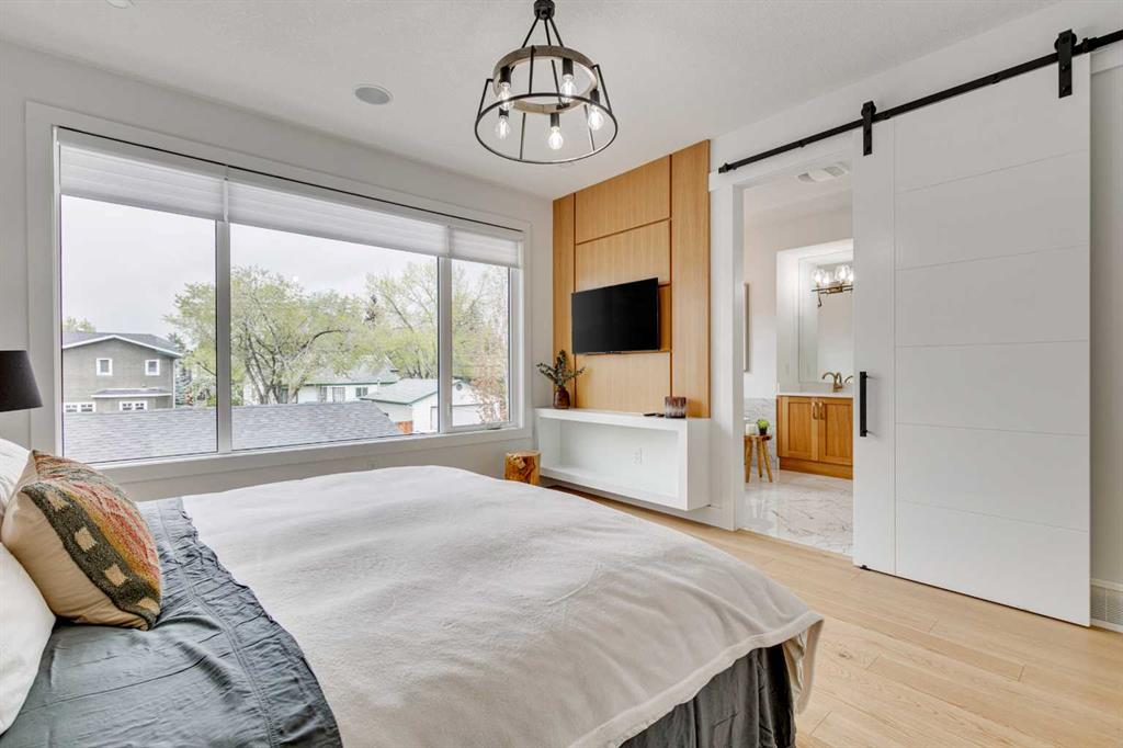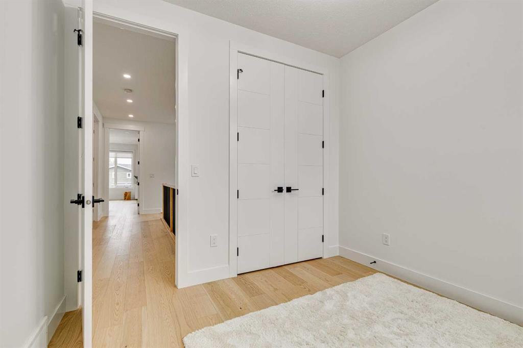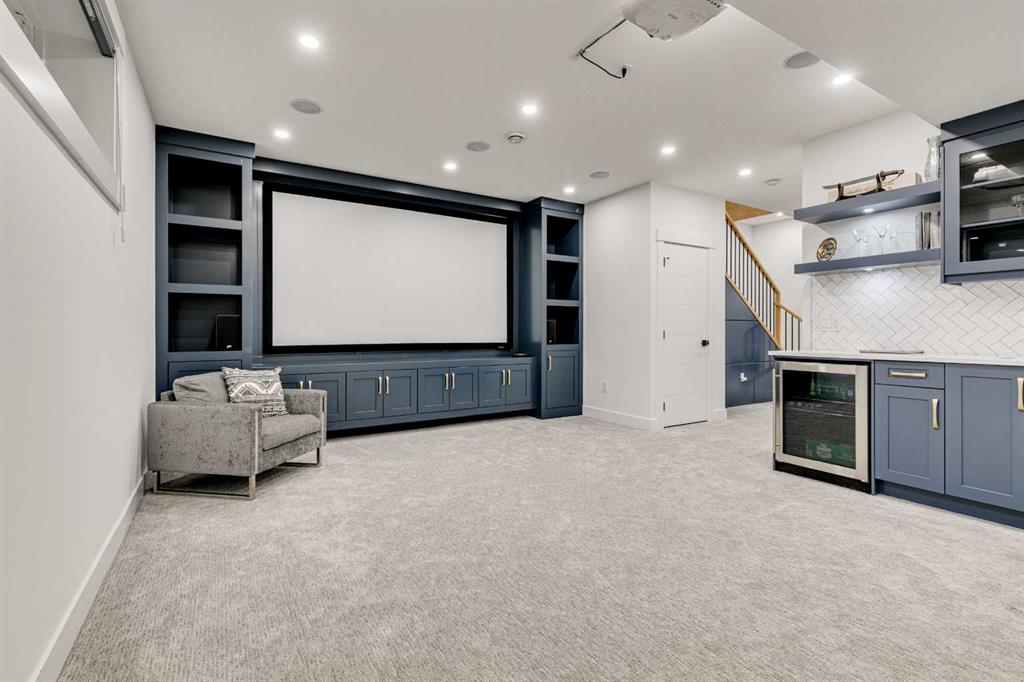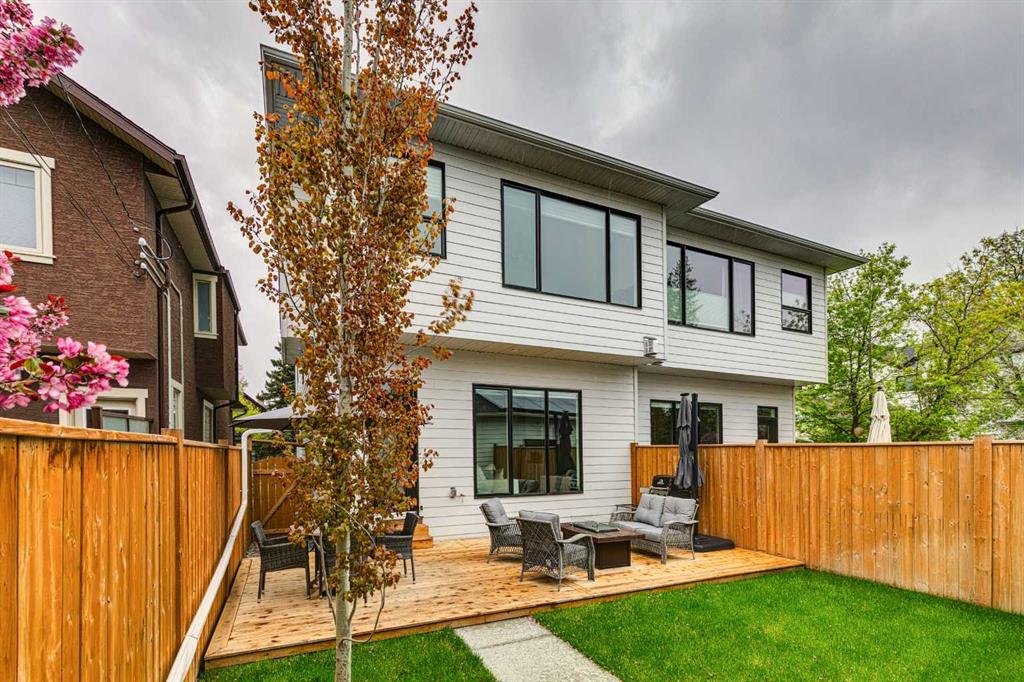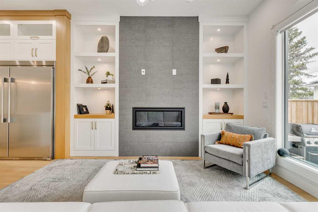 This stunning two-storey semi-detached infill with a fully developed basement offers over 2,640 sq ft of thoughtfully designed living space and a rare opportunity to own in the heart of Parkdale—one of Calgary’s most sought-after inner-city neighbourhoods for young families. With clean lines, sleek finishes, and a light-filled open-concept layout, this home blends upscale modern design with a family-friendly floor plan ideal for everyday life and entertaining. The sunlit front foyer opens into a bright dining area that flows seamlessly into the heart of the home—an expansive chef-inspired kitchen featuring quartz countertops, upgraded appliances, and a massive central island perfect for meals, homework, or gathering with loved ones. The open layout continues into the living room where a gas fireplace with feature wall adds warmth and comfort, while wide-plank engineered hardwood flooring and designer lighting add to the elevated feel. Tucked at the back, a custom mudroom with built-ins keeps everyday clutter at bay, and a discreet pocket powder room completes the main floor. Upstairs, the luxurious primary suite offers a spa-like retreat with heated floors, dual sinks, a freestanding soaking tub, oversized steam shower, and a custom walk-in closet with built-ins. Two additional bedrooms provide space for the kids or guests, while a generous four-piece bath and a well-equipped laundry room with sink, storage, and counter space complete the upper level. Downstairs, the fully developed basement is designed for comfort and connection, featuring in-floor slab heat, a striking media room with custom built-ins, a projector and screen, and a beautifully appointed wet bar with wine fridge. Whether it’s movie night with the family or entertaining friends, this level is ready for every occasion. A fourth bedroom with walk-in closet, a stylish four-piece bath, and a large storage room complete this lower level. Outside, enjoy a west-facing, fully fenced backyard with low-maintenance landscaping and a large patio, plus a double detached garage for added convenience. Bonuses include multiple designer feature walls, built-in ceiling speakers, and custom built-in elements throughout the home. Located just steps from the Bow River’s scenic pathway system, and minutes from top schools, parks, the Foothills Hospital, U of C, Kensington’s trendy shops and restaurants, and major routes like Crowchild Trail and Memorial Drive—this location offers a lifestyle that’s both connected and community-focused. Exceptional in design and location, this home is ready to support every stage of family life—right here in Parkdale.
