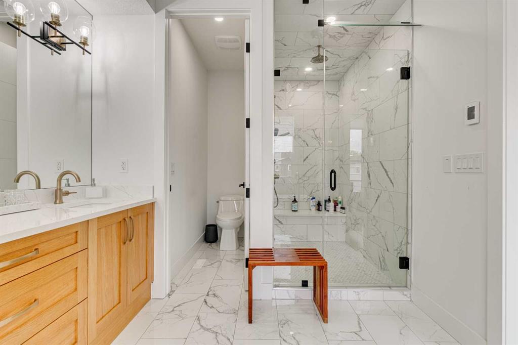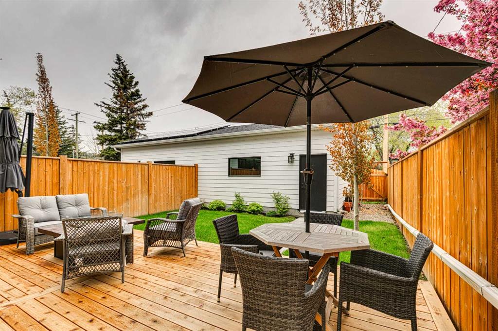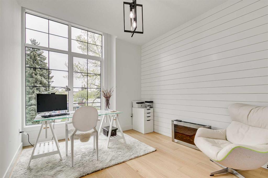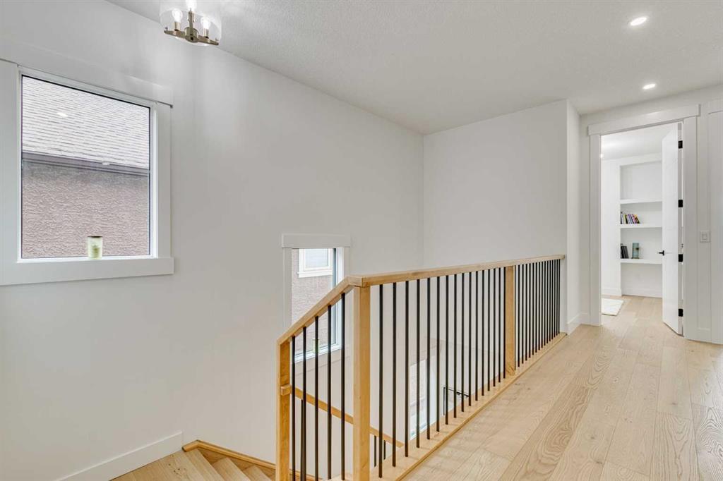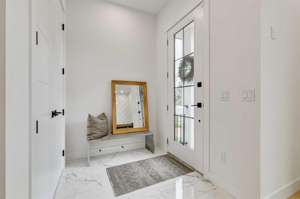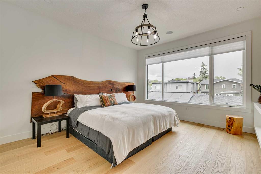 This stunning two-storey semi-detached infill with a fully developed basement offers over 2,640 sq ft of thoughtfully designed living space and a rare opportunity to own in the heart of Parkdale—one of Calgary’s most sought-after inner-city neighbourhoods for young families. With clean lines, sleek finishes, and a light-filled open-concept layout, this home blends upscale modern design with a family-friendly floor plan ideal for everyday life and entertaining. The sunlit front foyer opens into a bright dining area that flows seamlessly into the heart of the home—an expansive chef-inspired kitchen featuring quartz countertops, upgraded appliances, and a massive central island perfect for meals, homework, or gathering with loved ones. The open layout continues into the living room where a gas fireplace with feature wall adds warmth and comfort, while wide-plank engineered hardwood flooring and designer lighting add to the elevated feel. Tucked at the back, a custom mudroom with built-ins keeps everyday clutter at bay, and a discreet pocket powder room completes the main floor. Upstairs, the luxurious primary suite offers a spa-like retreat with heated floors, dual sinks, a freestanding soaking tub, oversized steam shower, and a custom walk-in closet with built-ins. Two additional bedrooms provide space for the kids or guests, while a generous four-piece bath and a well-equipped laundry room with sink, storage, and counter space complete the upper level. Downstairs, the fully developed basement is designed for comfort and connection, featuring in-floor slab heat, a striking media room with custom built-ins, a projector and screen, and a beautifully appointed wet bar with wine fridge. Whether it’s movie night with the family or entertaining friends, this level is ready for every occasion. A fourth bedroom with walk-in closet, a stylish four-piece bath, and a large storage room complete this lower level. Outside, enjoy a west-facing, fully fenced backyard with low-maintenance landscaping and a large patio, plus a double detached garage for added convenience. Bonuses include multiple designer feature walls, built-in ceiling speakers, and custom built-in elements throughout the home. Located just steps from the Bow River’s scenic pathway system, and minutes from top schools, parks, the Foothills Hospital, U of C, Kensington’s trendy shops and restaurants, and major routes like Crowchild Trail and Memorial Drive—this location offers a lifestyle that’s both connected and community-focused. Exceptional in design and location, this home is ready to support every stage of family life—right here in Parkdale.