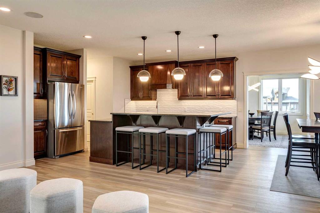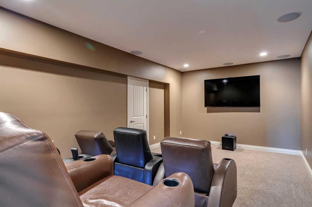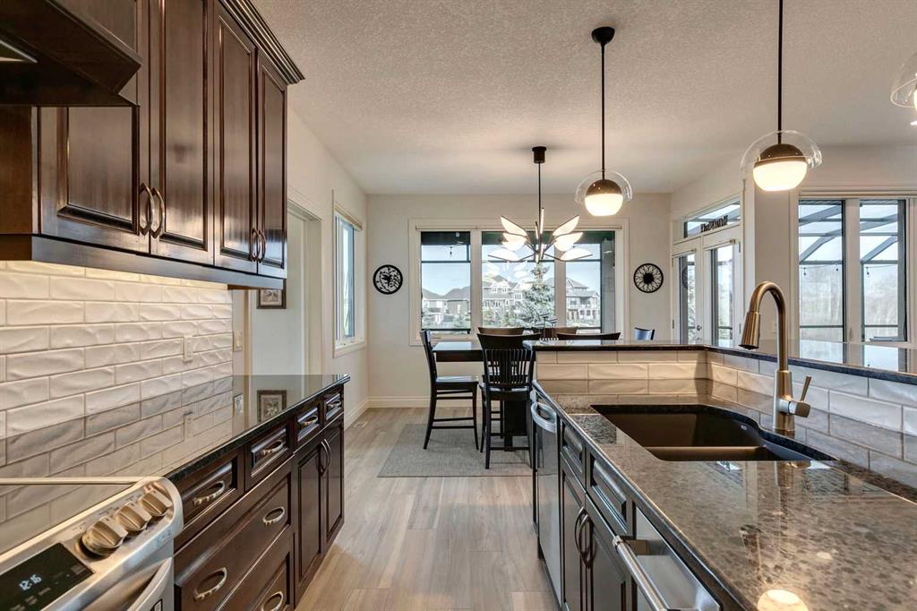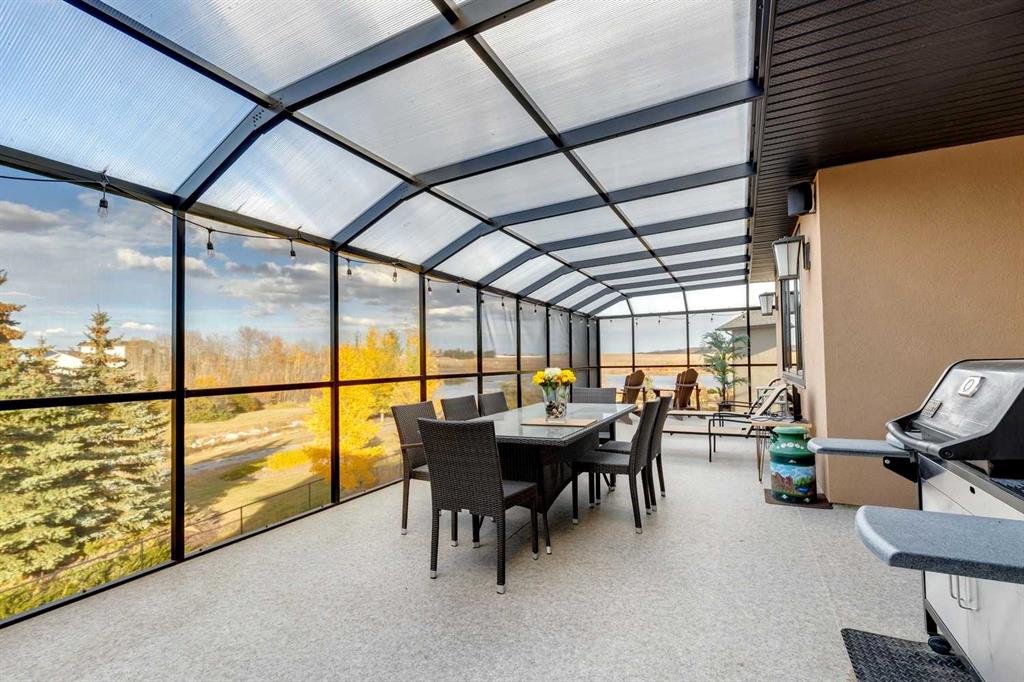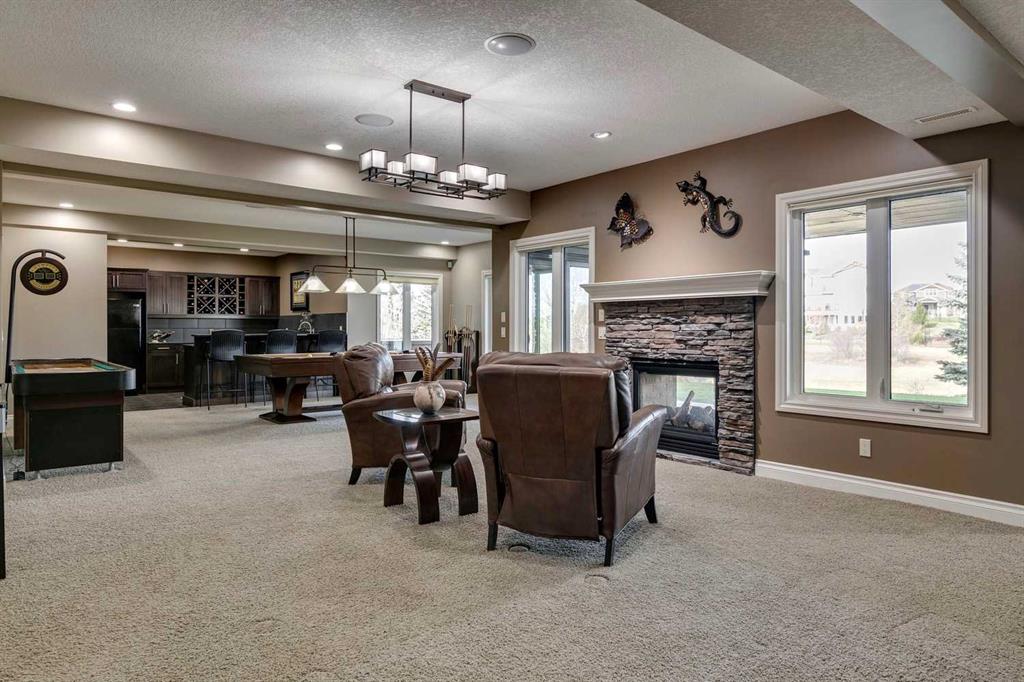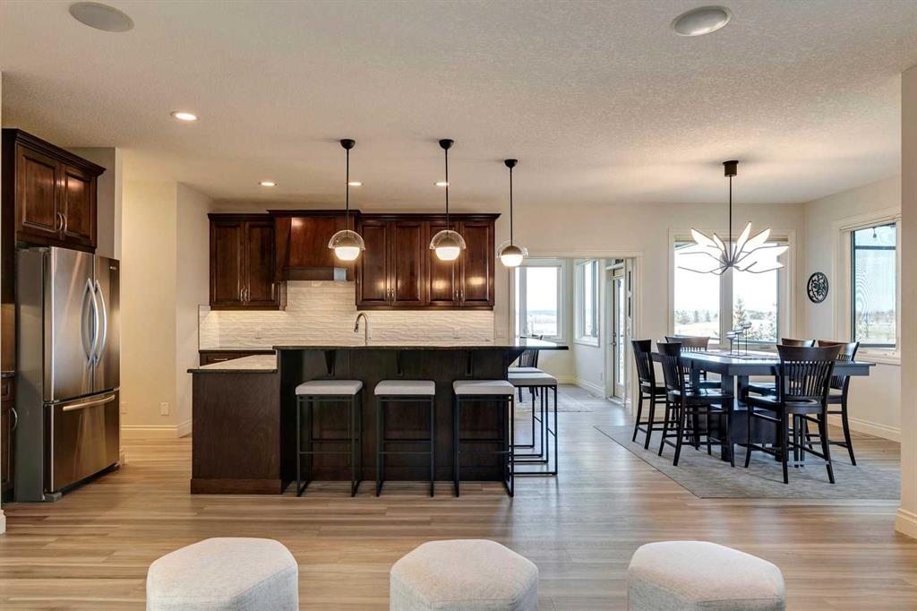 Introducing a dream home in an exclusive community with a small town feel! Nestled within a serene enclave, this two-story residence was constructed with family, friends and fun in mind. With breathtaking views of sunrises to the East and sunsets over the majestic Rockies in the distance, this property is a slice of paradise. This home is an entertainer’s delight, designed for both grand and intimate gatherings. The open-concept living room features a gas fireplace, and the formal dining room is perfect for hosting special occasions. Wood cabinets, granite counters, stainless appliances, a large pantry, a central island with lots of seating and a sunny casual dining area make this kitchen extra special. The main floor offers a primary bedroom with double walk-in closets and a spa-like ensuite, a private home office and a convenient laundry room. A screened porch spans an impressive 50 feet, allowing for extended outdoor living. Here, you can dine or relax while watching the wildlife in the wetlands behind the property. Upstairs, you’ll find a haven for children, featuring a loft with a homework area, a bonus room, three bedrooms and a well-appointed bathroom offering private space for everyone. The walk-out basement is the perfect venue for game night or movie marathons. A vast family room with built-in cabinets, huge games area, wet bar, and media room with tiered, reclining seats set the stage for unforgettable gatherings. There’s space for a home gym and access to the covered patio, outdoor fireplace and hot tub, making this floor the ultimate party space. Two additional bedrooms ensure guests have privacy and comfortable accommodations. The spacious garage is versatile and ideal for a home-based business, accommodating product storage or creative projects. It is also perfect for an active family with sporting equipment, with ample space for a 26ft boat, ATV, bikes, hockey gear, and more. Outside, the yard is beautifully landscaped with shrubs, trees and perennials and the large lot provides privacy. The property backs onto a tranquil creek and wetland oasis that plays host to an array of bird species, including migratory cranes and swans who visit regularly, making each day a celebration of nature’s beauty. Embrace the small-town experience, enjoy skating on the nearby lake, and explore the surrounding wilderness. This tight-knit and supportive community where neighbours become lifelong friends is just a short drive from downtown Calgary and boasts excellent schools and sports programs for your children. The mountains, Ghost Lake and numerous outdoor actives and pathways are nearby, offering the perfect blend of tranquility and adventure. Welcome to a home where your heart will find its sanctuary.
